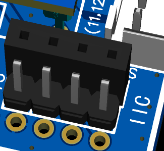引出iic引脚两组2.54间距4P接口,可以根据需要焊接排针,排母或者其他2.54间距的端子。