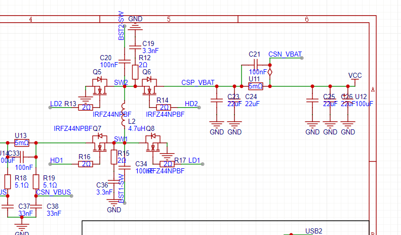 IP6557在硬件设计上采用了四颗IRFZ44NPBF作为主功率MOS FET