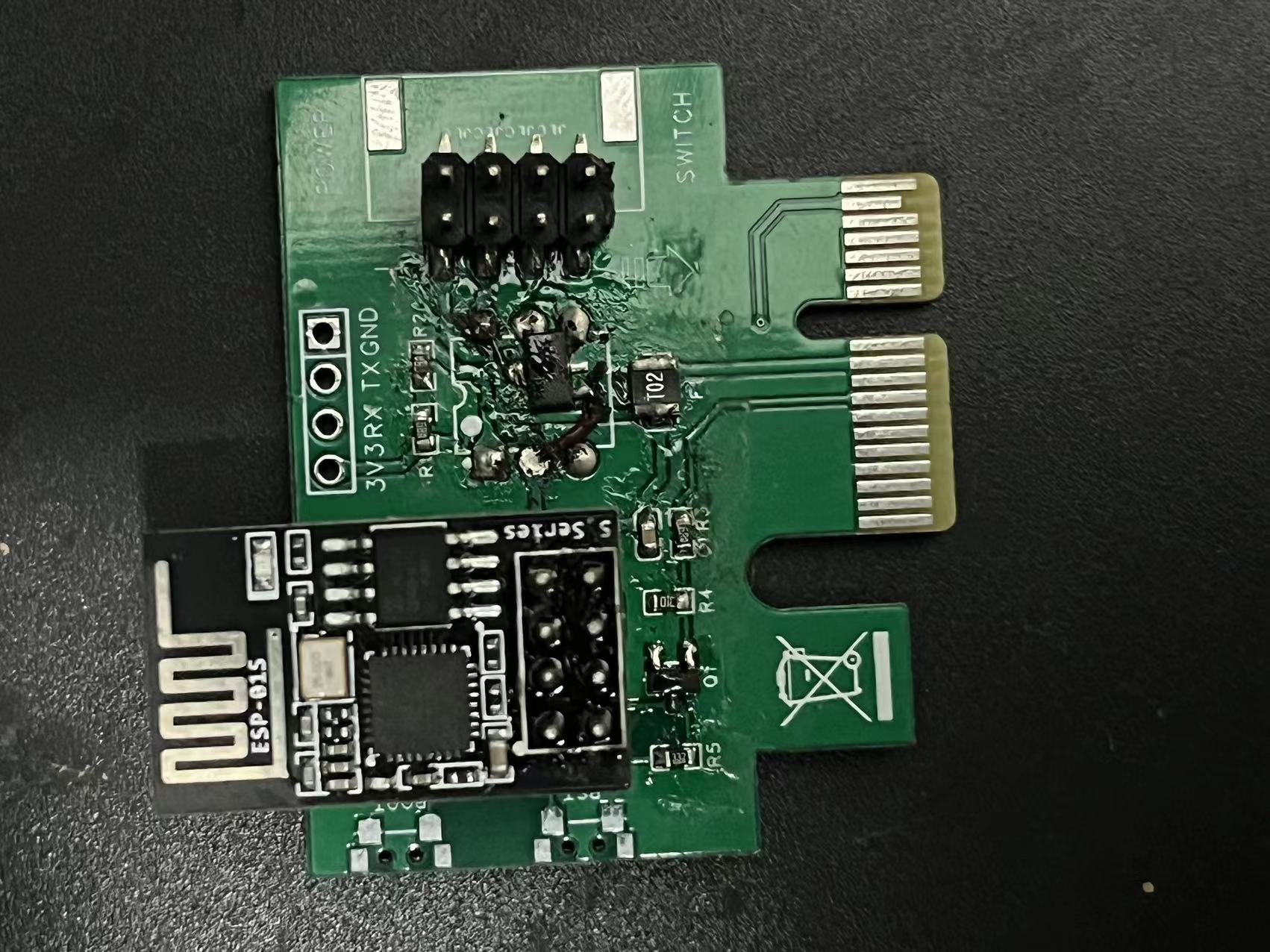 去学习点灯blinker怎么创建设备,并导入我上传的blinker界面配置。其次,将代码烧录好并重启,板载LED会进入闪烁状态,10S后会有NetWaker-WIFI的网络放出,连接此wifi后会弹出WEB配网页面,输入wifi信息和blinker设备的密钥,然后点击保存即可。如果输入的信息都是正确的,板载LED闪烁后会常亮,Blinker设备也会显示在线。最后将电脑关机断电,将开机卡插入PCIE插槽,延长线分别进入接入主板开机口和机箱开机线。电脑上电,观察板载LED状态,如果不亮去bios调整电源APM的pcie选项,如果短暂闪烁后常亮,此时则基本ok,使用blinker进行开机测试。