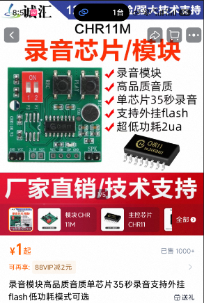 这个主控芯片就是录音芯片,嘉立创没有,这个封装也是我自己画的。所以这个器件需要淘宝购买: