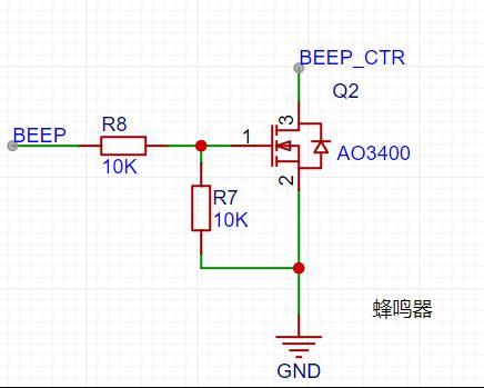 采用无源蜂鸣器(价格便宜),手环类似震动马达,通过PWM控制mos管,间接驱动。