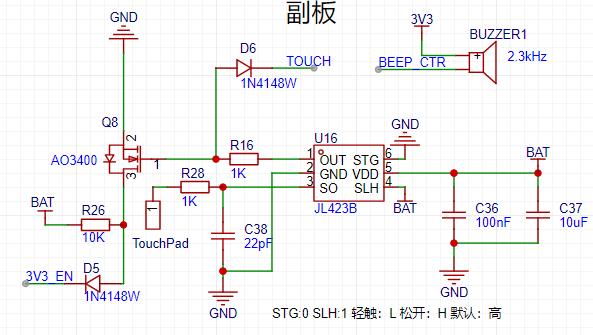 1)开机功能:设计时考虑产品完整性,不增加任何按钮,使用触摸方式开机和关机。开机方式:1.轻触松开:离线模式 2.轻触1秒:联网模式。 3.插电自动开机(不需要可以删除1n4148w)。
