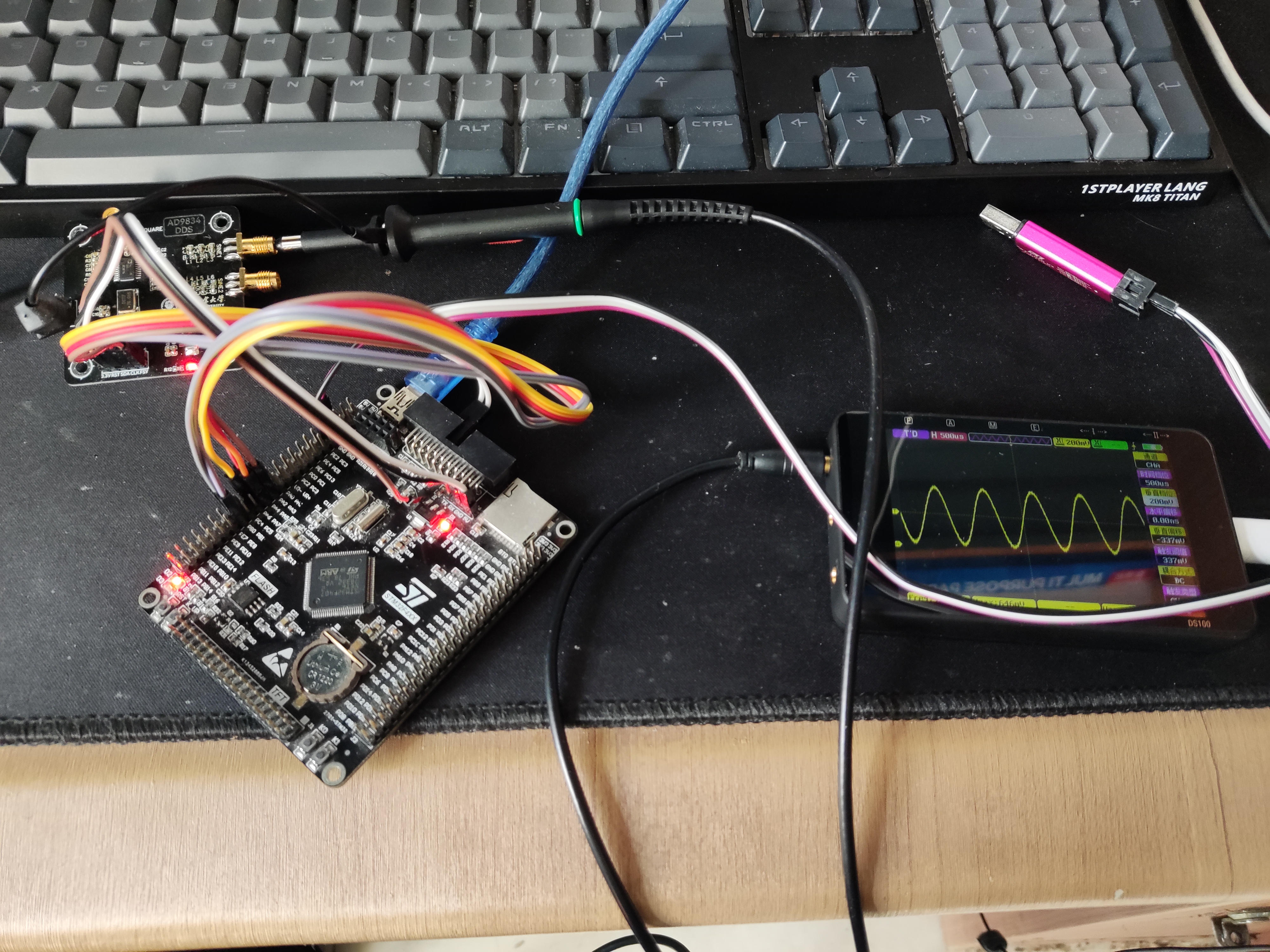 该项目使用AD9834芯片设计了一个DDS模块,可用于30 MHz以内的正弦波、三角波和方波的的信号发生。正弦波输出带30 MHz LC低通滤波器,正弦波输出会带直流分量。
