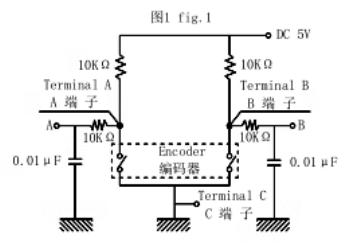 编码器输出 AB 端用了手册推荐的 RC 滤波网络,就是下图这个。因此,对于 51 这类需要将端口置 1 的 MCU,参照 这篇文章,不能使用这个 RC 滤波网络,因此需要将 R4,R5 短接。