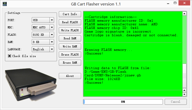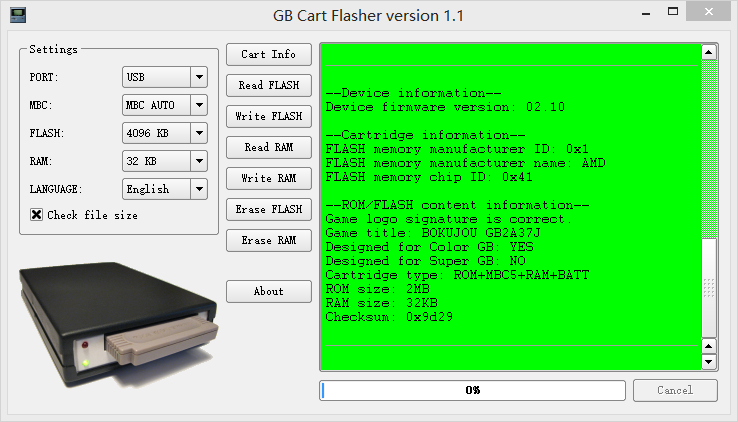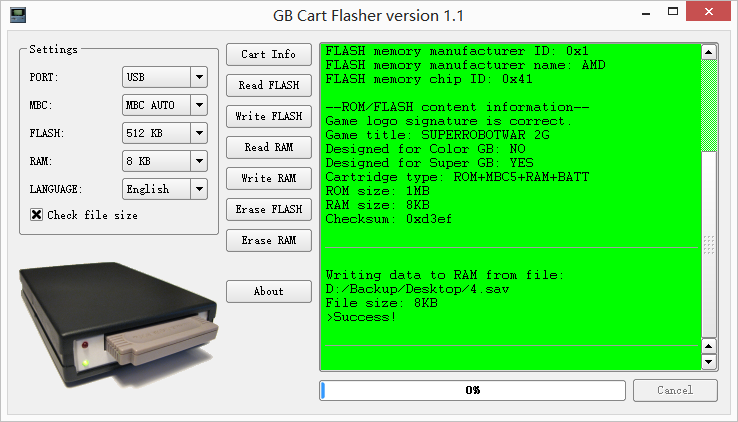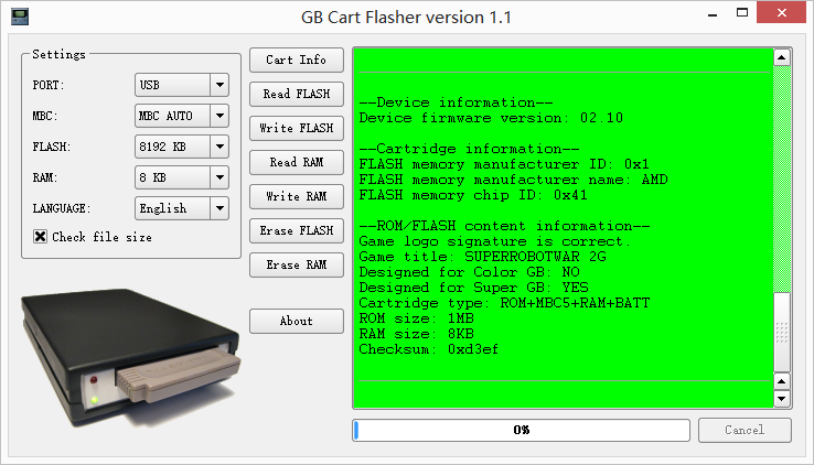 主要功能:1.读取GAMEBOY卡带的游戏ROM及备份存档;