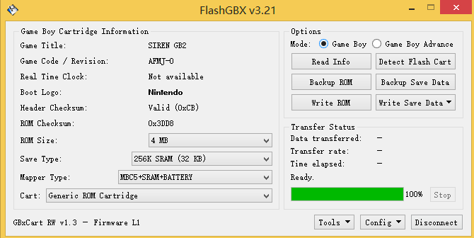 主要功能:1.读取GAMEBOY卡带和GAMEBOY ADVANCE的游戏ROM及存档备份;