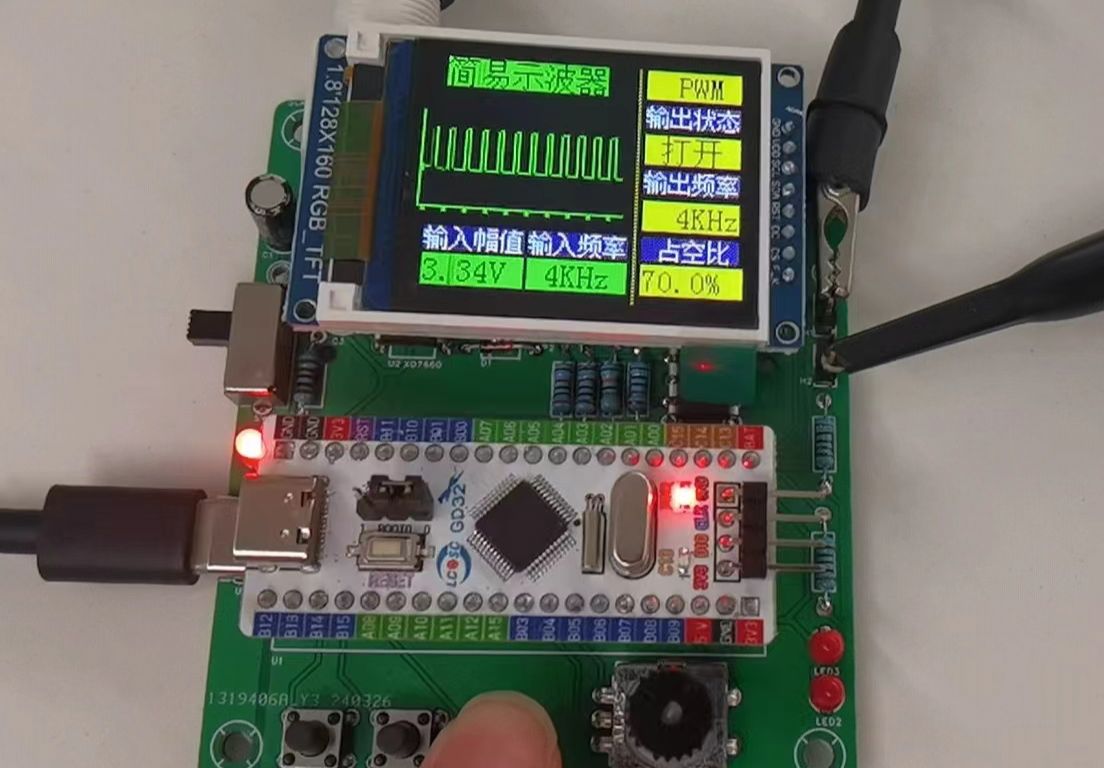 2024嘉立创训练营项目--基于立创开发板GD32E230的建议数字示波器。由电源开关电路,负电源产生电路,信号输入和处理电路,鉴频电路,GD单片机控制电路,TFT显示电路以及按键指示灯组成,从硬件设计到软件设计,实现波形显示,幅度、频率测量和PWM输出等功能。