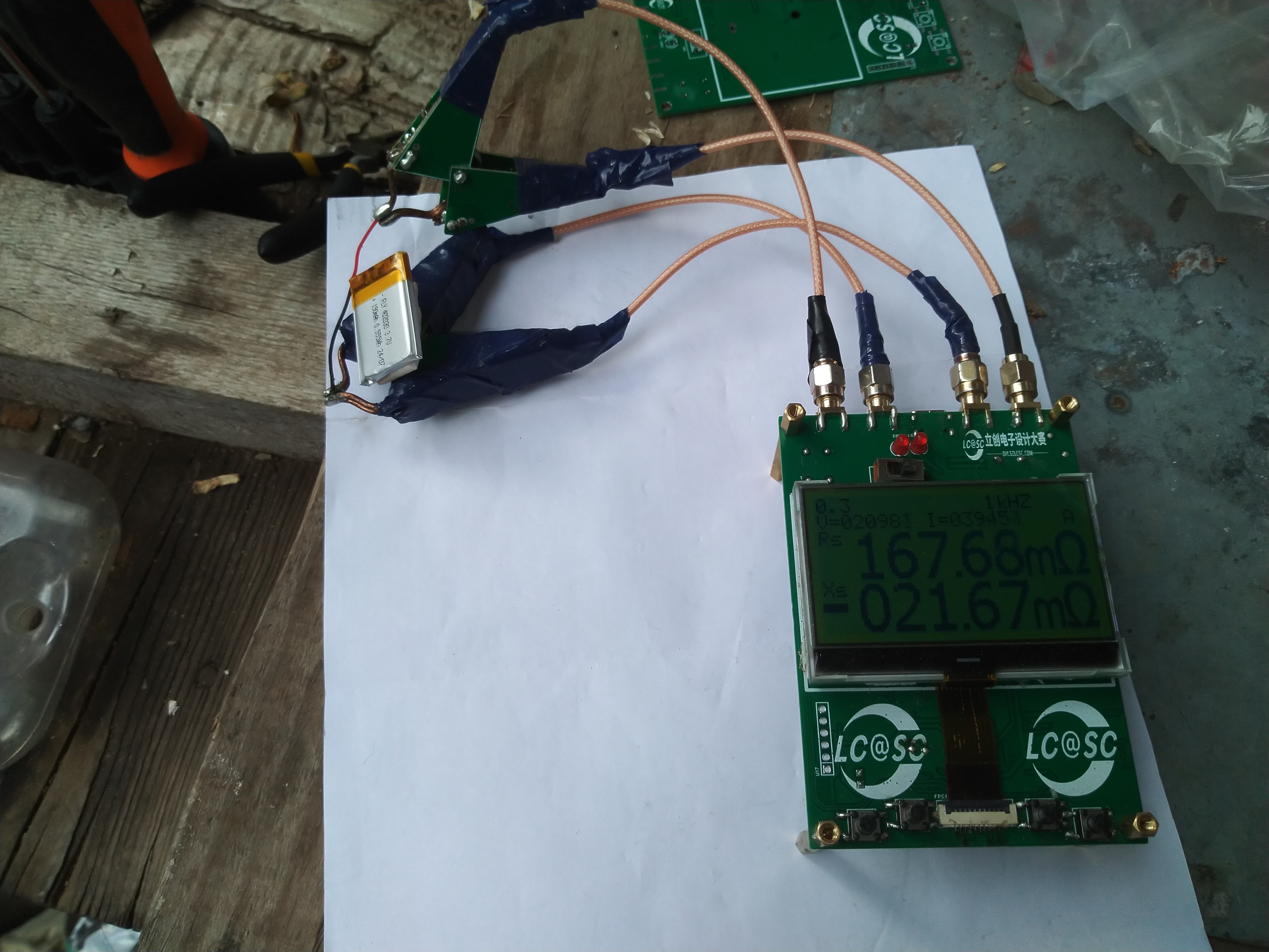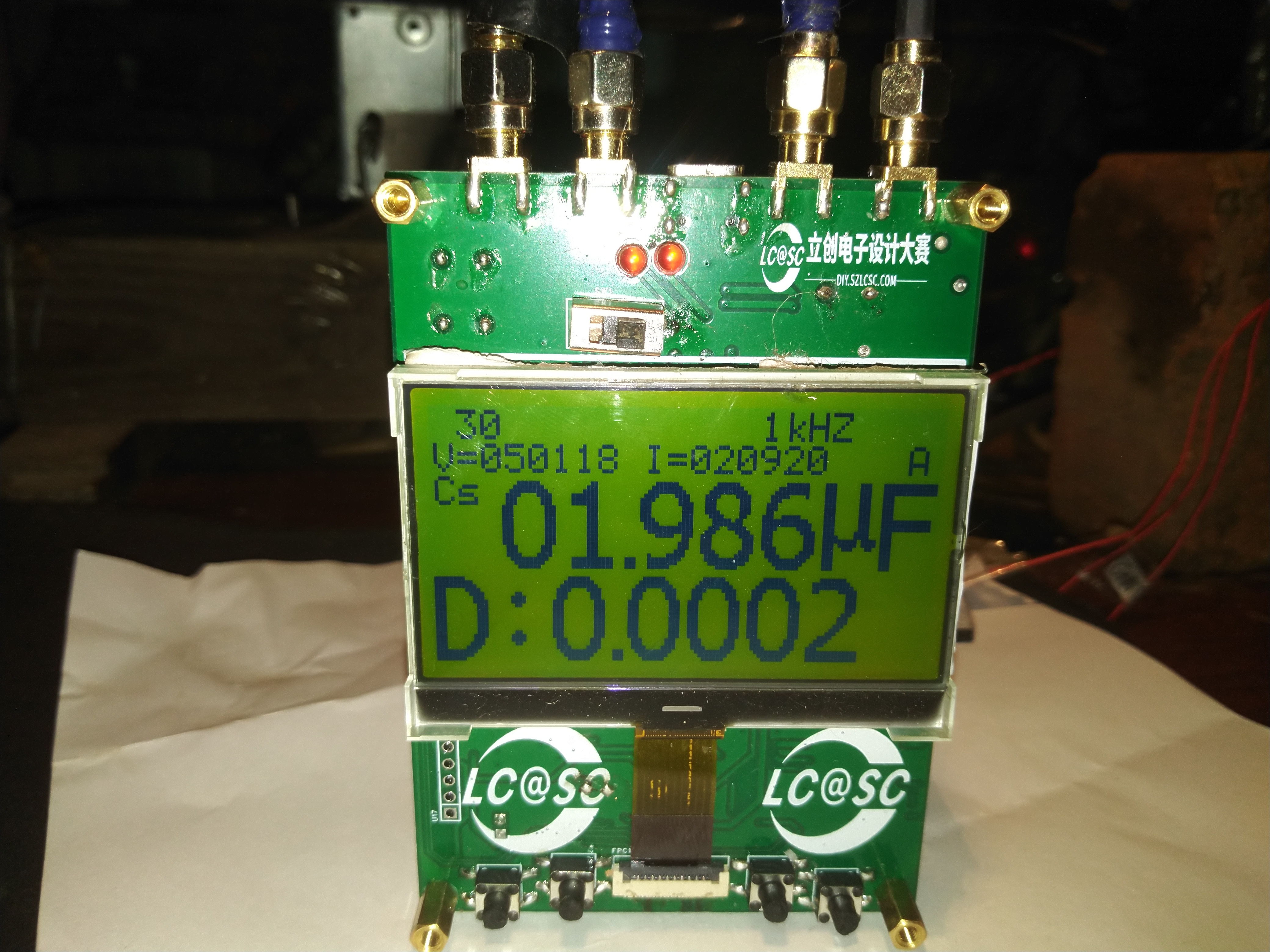 想测准毫欧级电容只做幅度校准还不行,还要结合短路清零,上面校准完后夹住1毫欧电阻,通过短路校准把显示数字调到1毫欧。