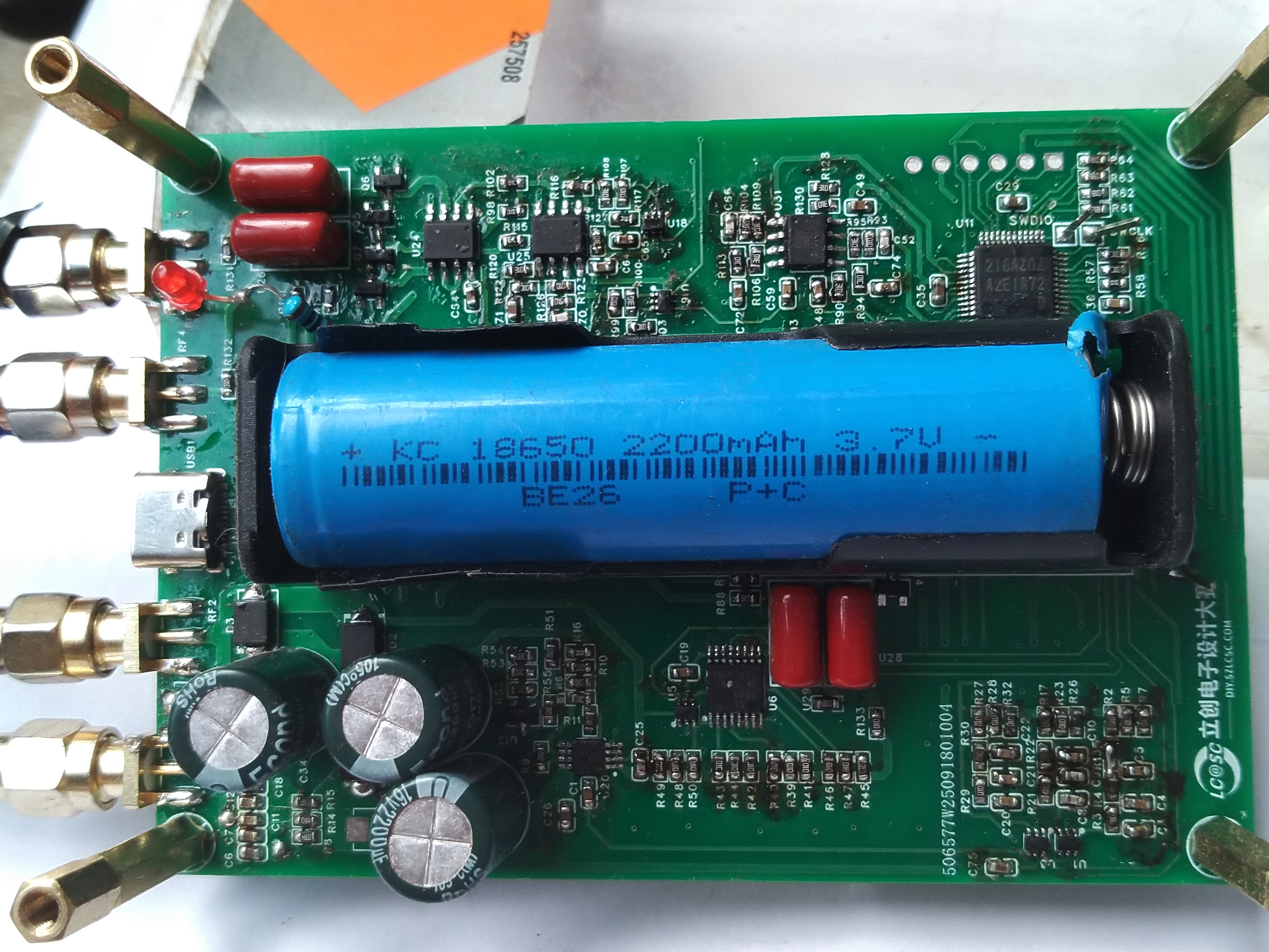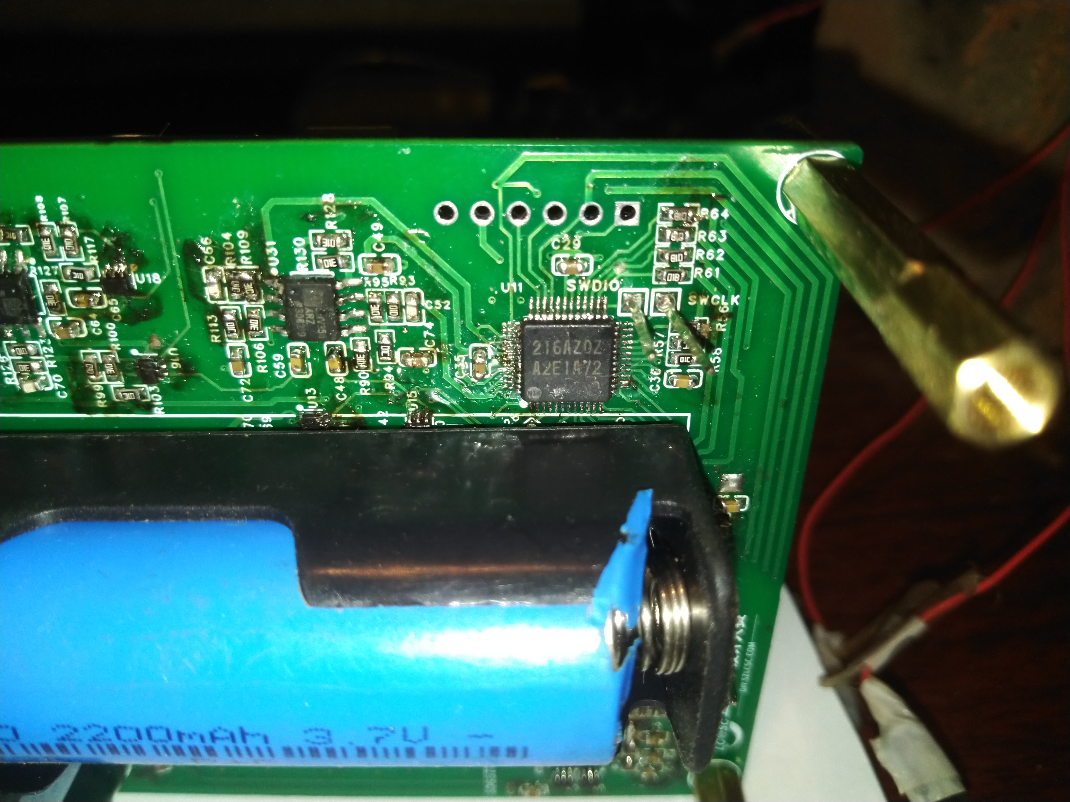 焊接电路先焊好电源部分测量3.3V、1.66V没问题再焊模拟电路信号部分,焊好测量没有短路再焊单片机,3157模拟开关烙铁焊接容易虚焊。焊接完电路切换到30欧档,夹住33.3欧电阻,看屏幕V和I 差不多一样大表示电路放大部分正常。