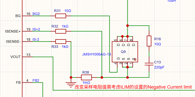 采样电阻根据实际电流需求选择合适的封装,不同的阻值要配置响相应的ILIM设置的Negative Current limit,采样电阻尽量选择大体积的提升过流面积,虽然功率冗余了但是相对大电流的阻抗降低了,可以减小寄生的参数带来的影响。