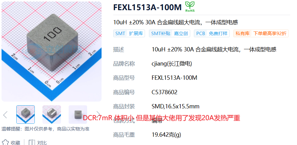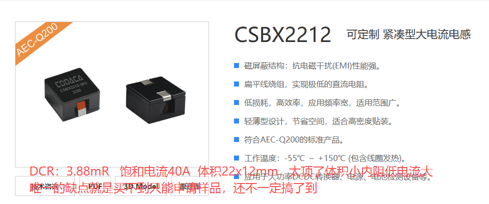 注:电电感选型时还需要考虑电感的直流电阻(DCR),阻值过大会降低电源转换效率,并且会降低电感的持续电流长时间高温运行会严重发热,但越小的DCR体积就会越大需根据布局与结构综合考虑。