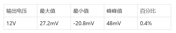 12V输出纹波Vpp:48mV 24V输出纹波Vpp:63.2mV 24V输出纹波Vpp:63.2mV