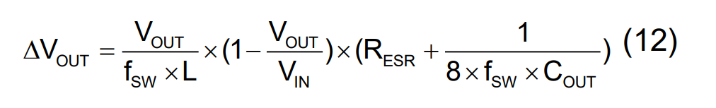 手册中有3个公式,本设计电解电容占大头所以选公式12,两个470uF电解电容+6个10uF Mlcc(PCB有做冗余设计)+2个100nF Mlccc,输出设计纹波在50mV以内。