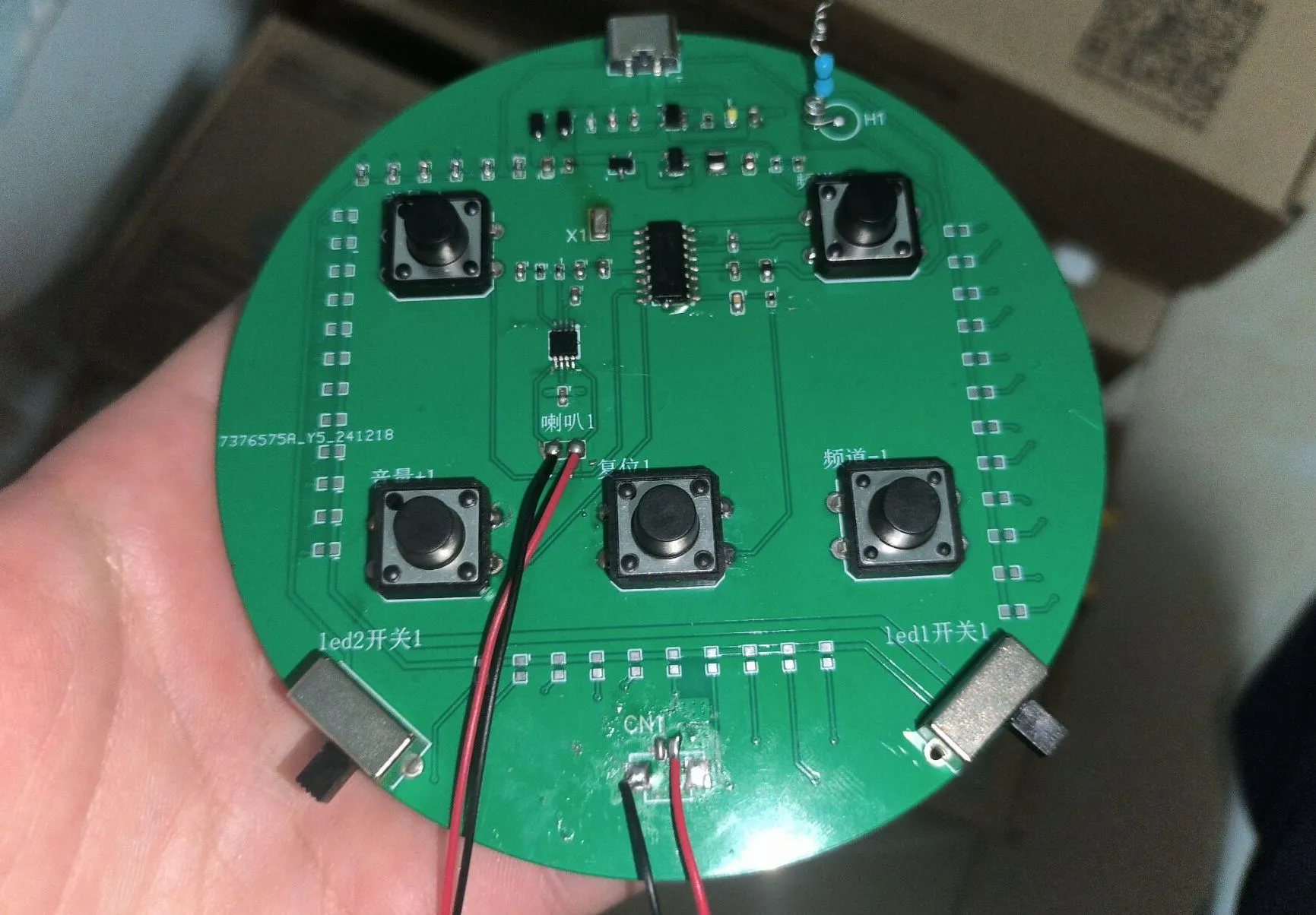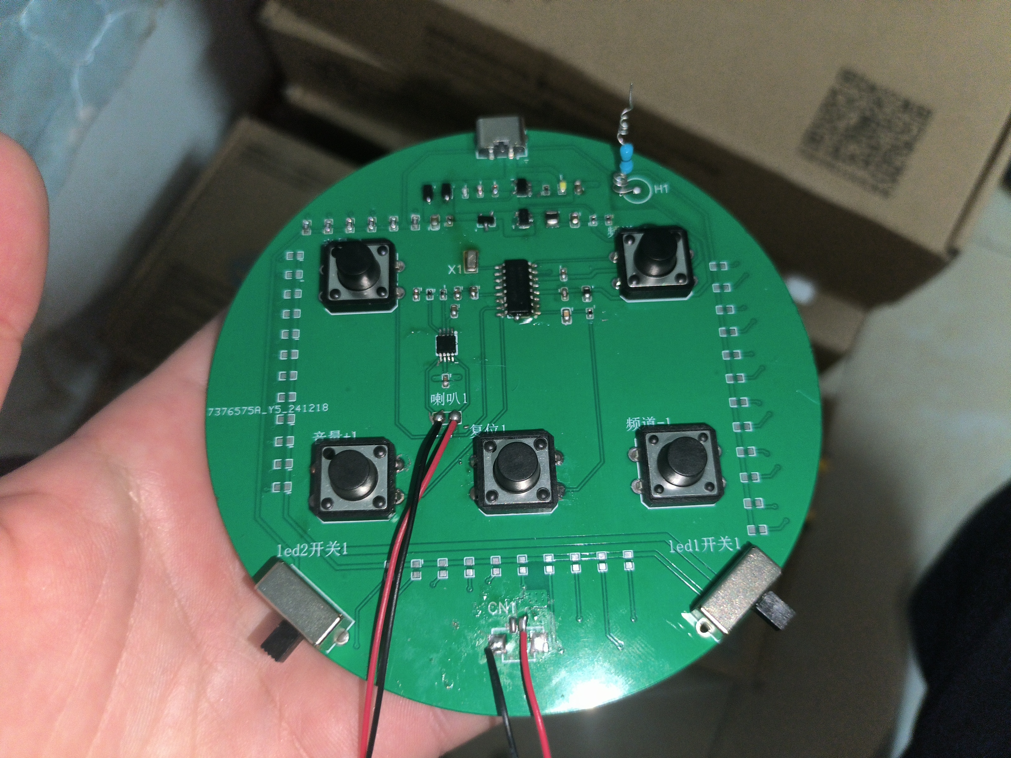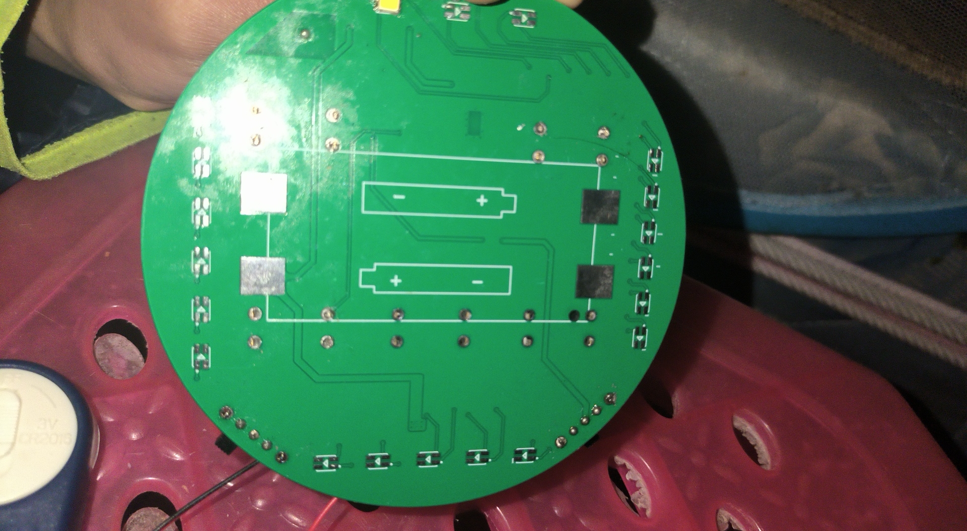 可以充电的led灯板外加收音机,因为这是第一版,电源是2A的,但是电源线宽是25mil,所以上电会烫,加上天线买错了,用的0欧电阻绕几圈当的天线,效果一般,那个led灯,就是背面的灯,得买对.