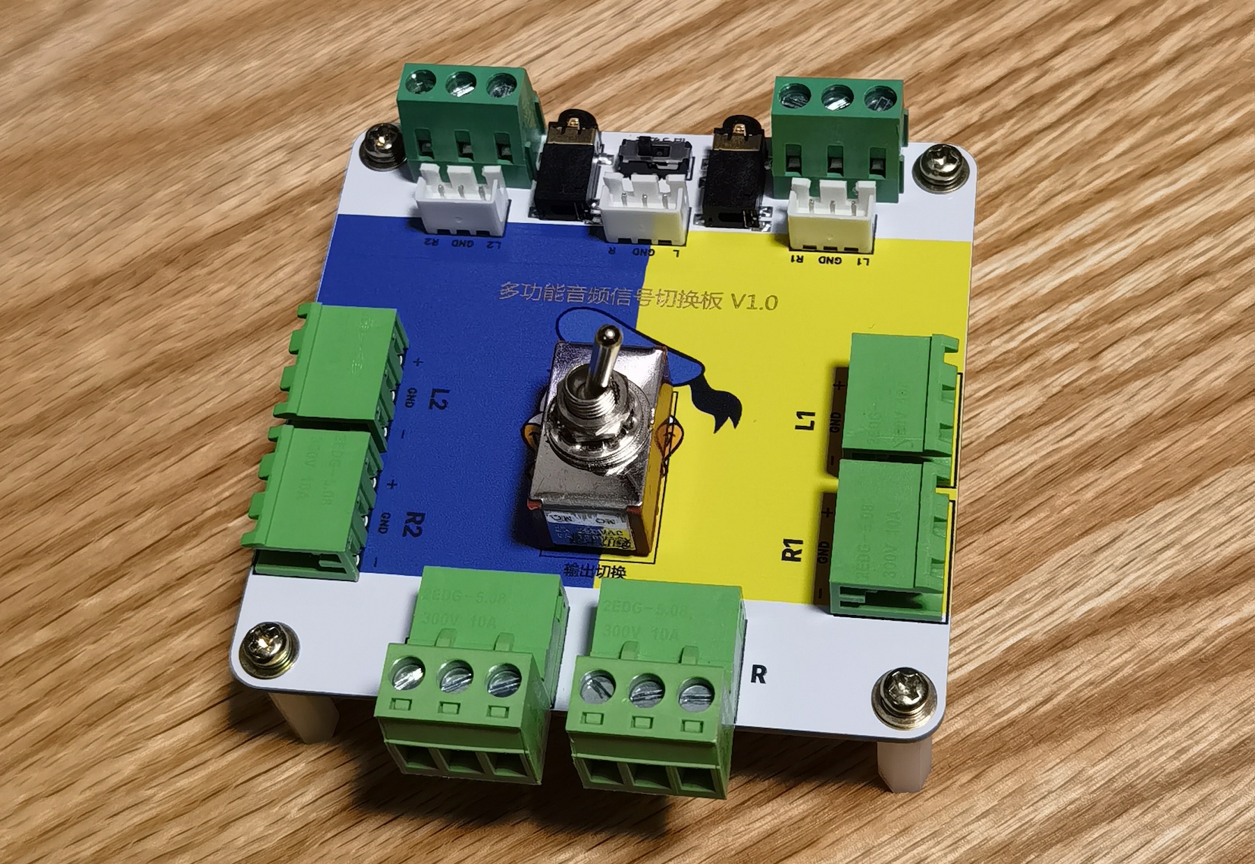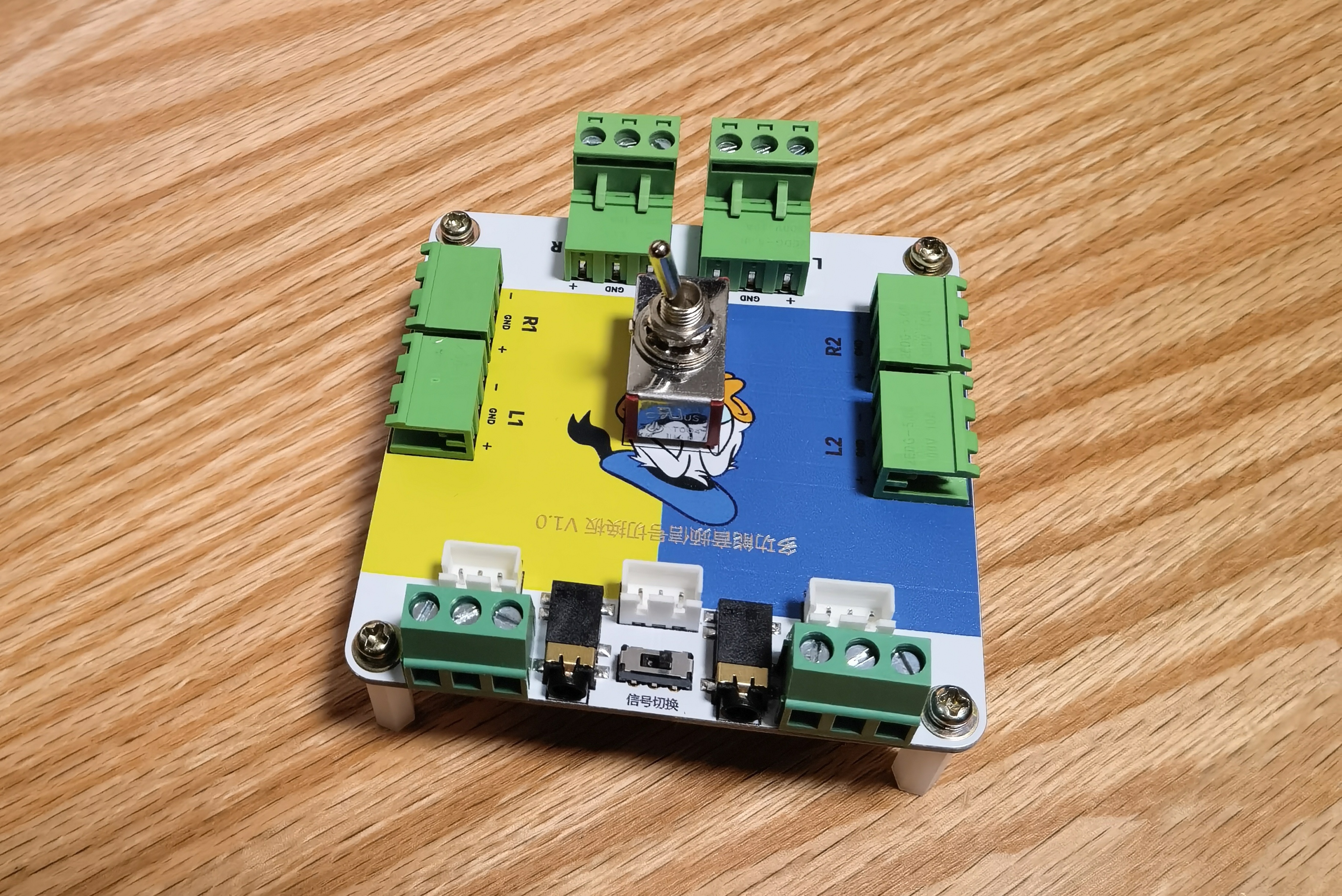 制作功率放大版经常需要对音源或音箱进行快速切换,以对比音质效果。这就是一个可以分别对音源信号和功率信号进行切换的多功能音频信号切换板。前级输入有耳机插孔和3.5mm端子以及KF128接线端子三种接口,适应大部分信号源。