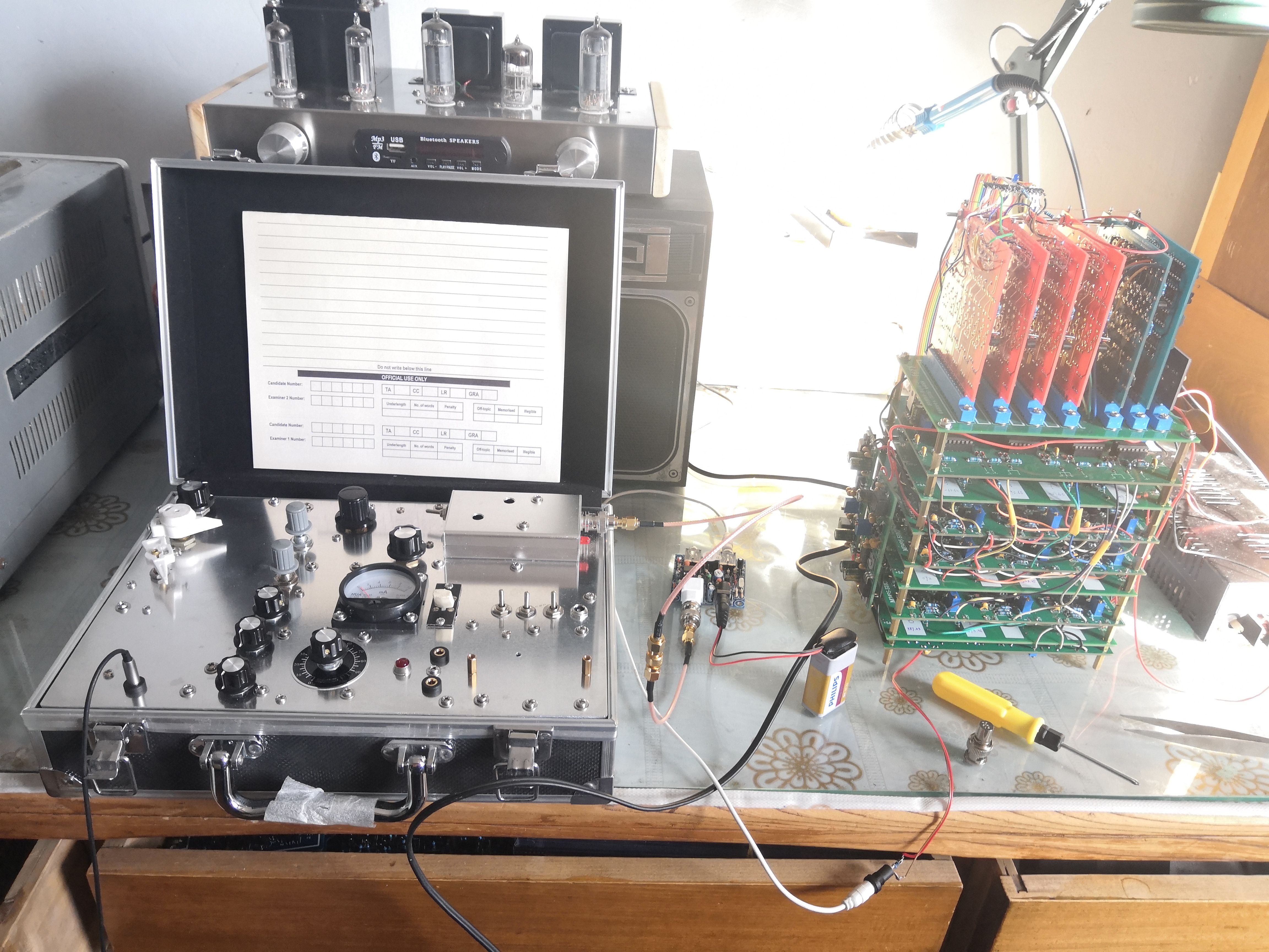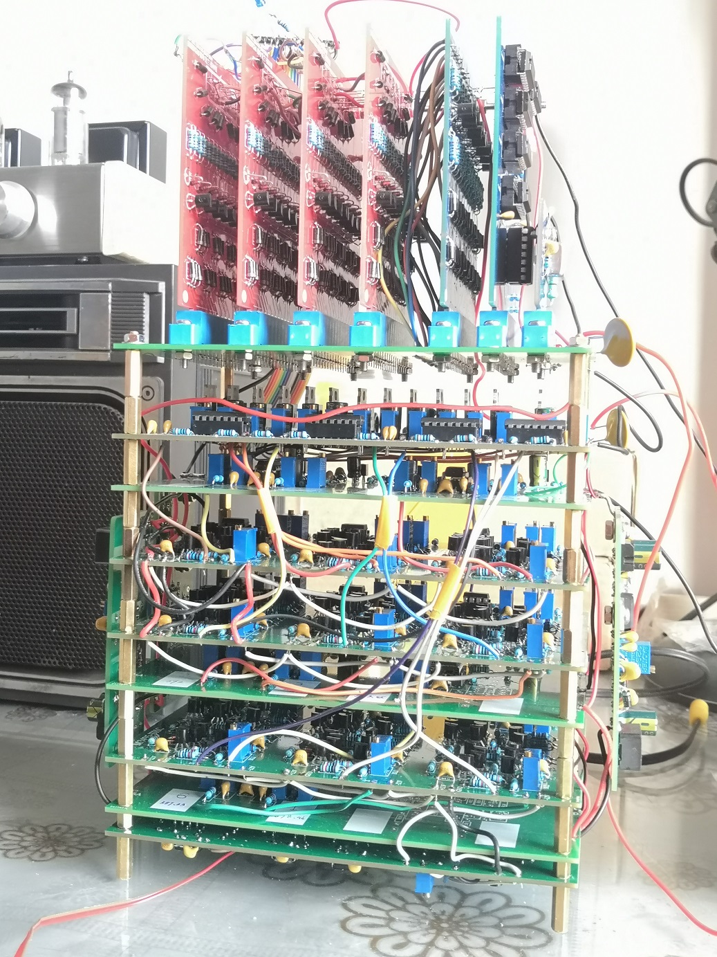 根据1971年6月版《东方红半导体演奏器》改进而来的全自动演奏器。不使用任何单片机或嵌入式控制器,可以自动演奏《东方红》全曲