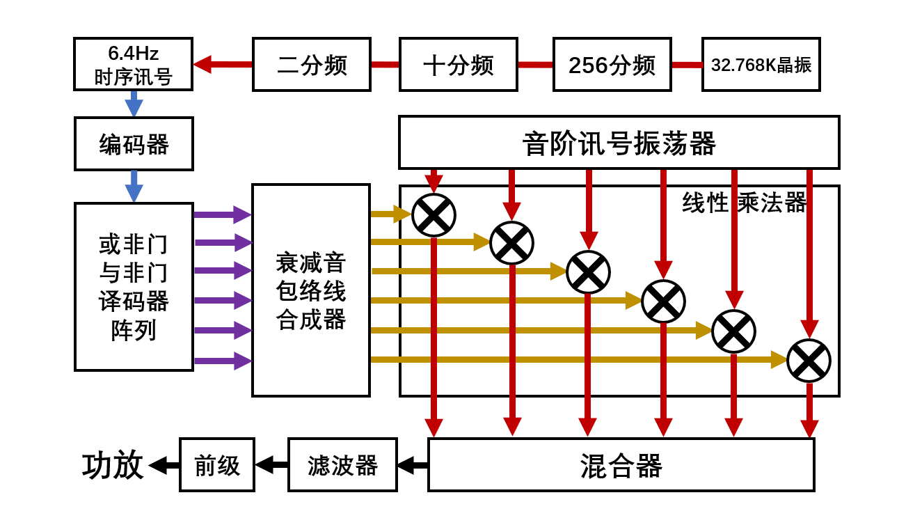 模拟部分分为:音源振荡器、包络线生成器、乘法器、混合器