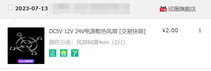 来一张风扇的特写,我这边选的是二手的AVC,12V1.88A直径40mm的服务器风扇,这个风扇满功率跑很暴力,很便宜并夕夕几块钱一个就行。