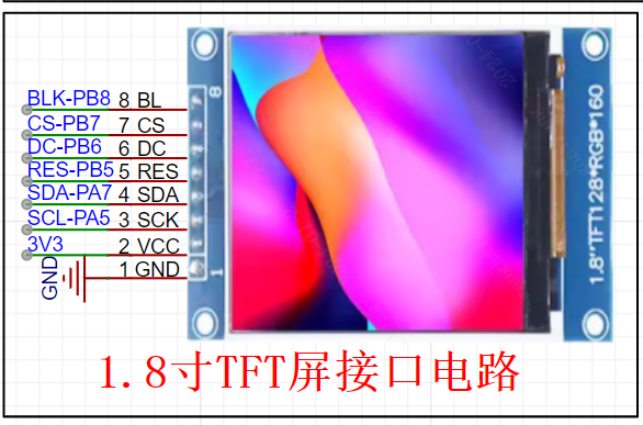 - 尺寸: 1.8寸TFT显示屏通常指的是其对角线长度为1.8英寸的尺寸,通常具有相对较小的显示面积,适合在空间受限的设备中使用。