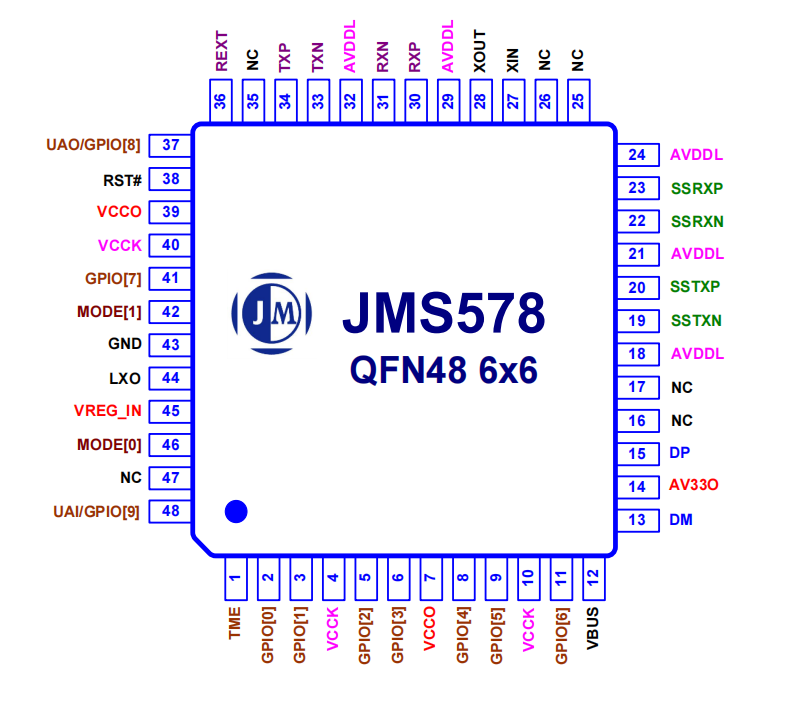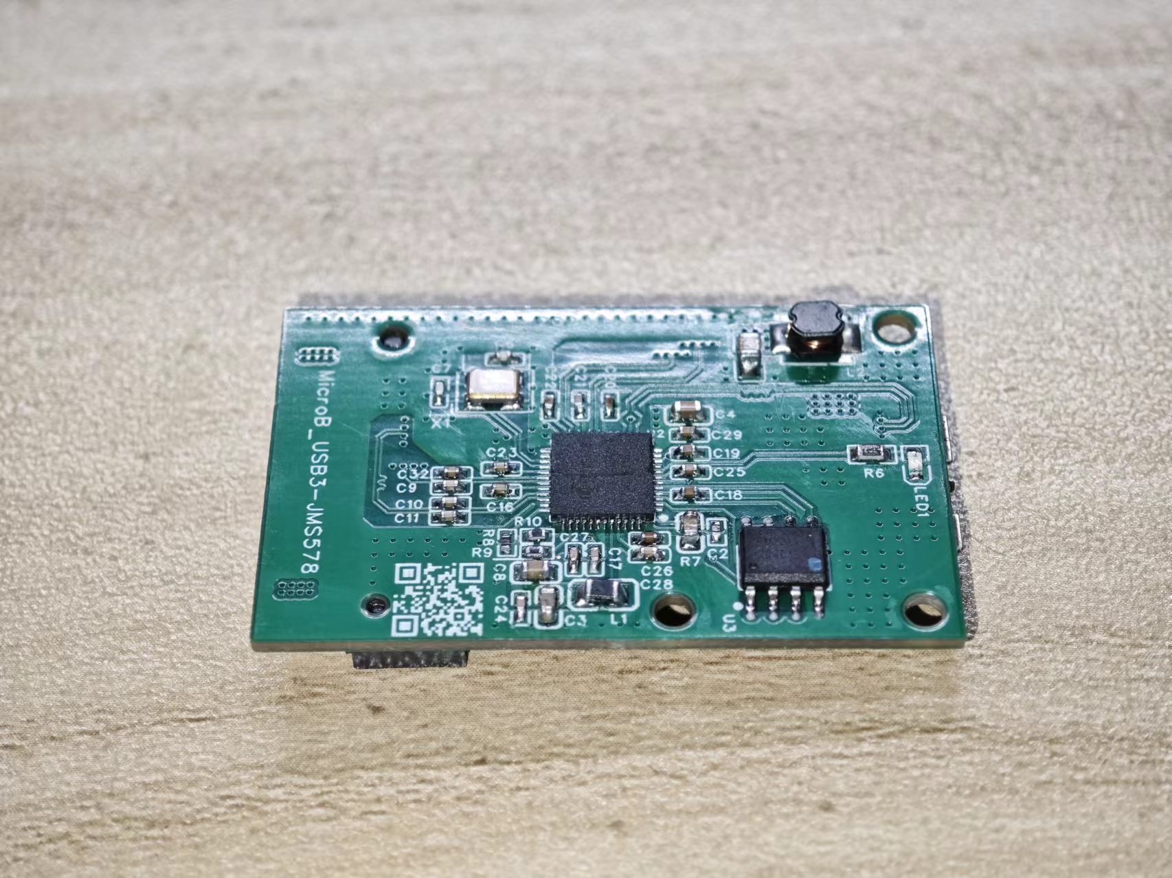 本工程选择JMS578作为核心开发,原因是手上有一个坏掉的硬盘盒,那就拆现有的芯片进行开发,包括固件。(淘宝也有卖,大概三四块一个)