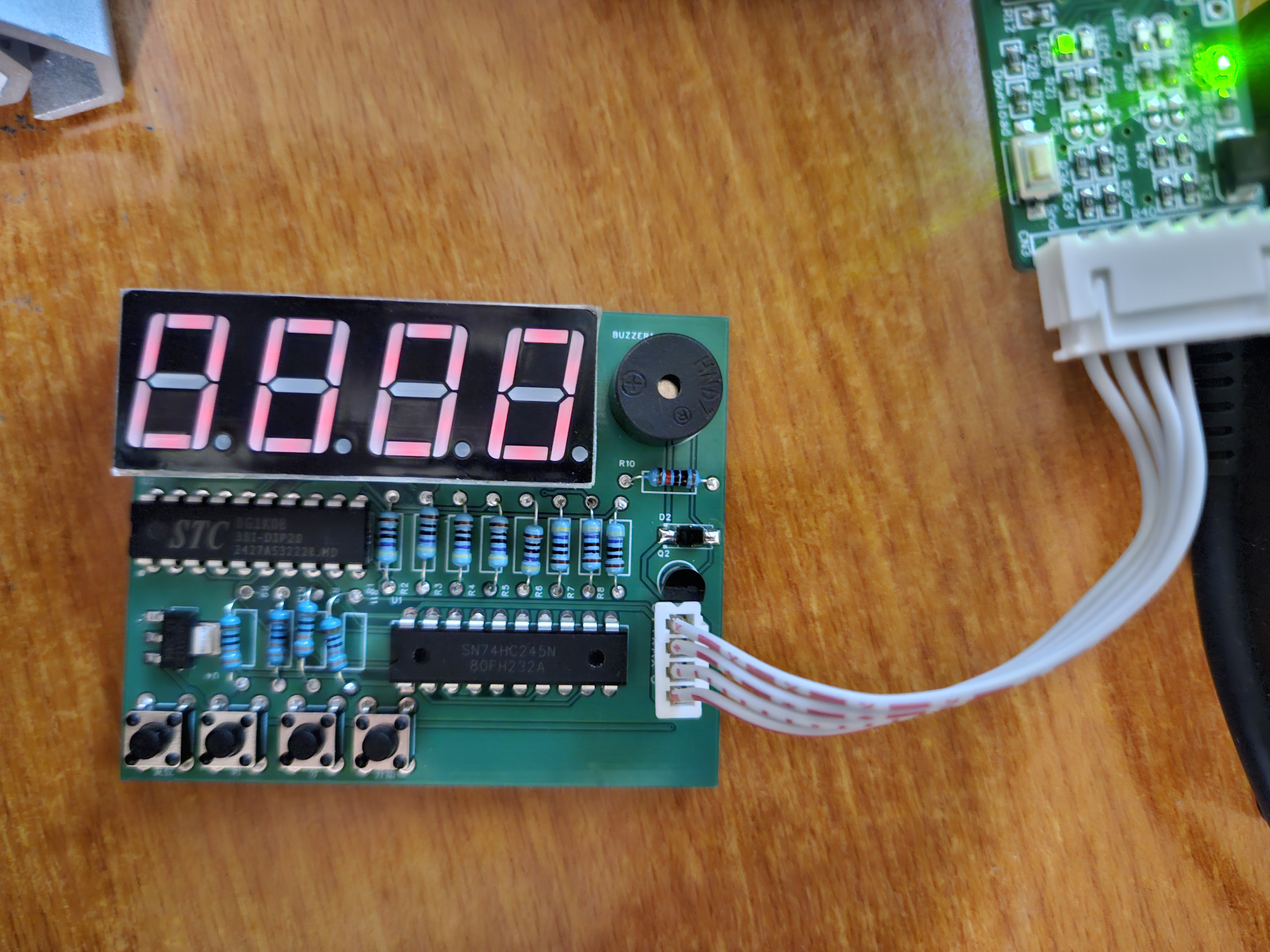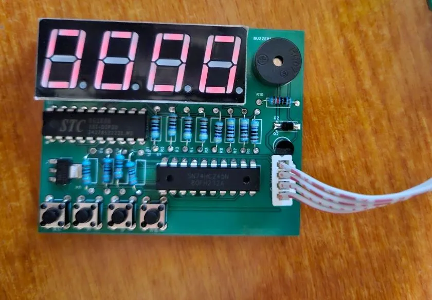 基于STC8g1k08 16pin-dip封装,数码管这里限流电阻应该小一点,我这里选择的有点大了,导致拍照效果不太好,数码管显示不太清楚,但是功能正常