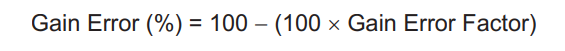 输入端存在的差分电压相对于分流电阻器处产生的电压的变化量是根据外部串联电阻(RF)值和内部输入电阻RINT来的,如上述中的原理图.当将输出电压与分流电阻器两端的电压进行比较时,到达器件输入引脚的分流电压的降低表现为增益误差。可以计算一个系数来确定通过添加外部串联电阻引入的增益误差量。计算分流电压与设备输入引脚处测量值之间的预期偏差。