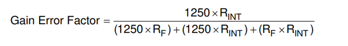 我使用的是INA180A2这款电流感应放大器,他的增益GAIN为50,内部电阻RINT为10KΩ,Rf选择10Ω通过Gain Error Factor公式计算可得: