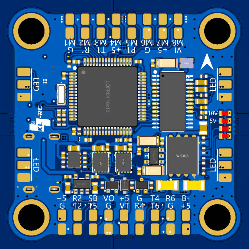 一款基于STM32F722RET6的飞控,内置高压BEC,支持3-10S电压范围,双ICM42688陀螺仪,支持X8模式