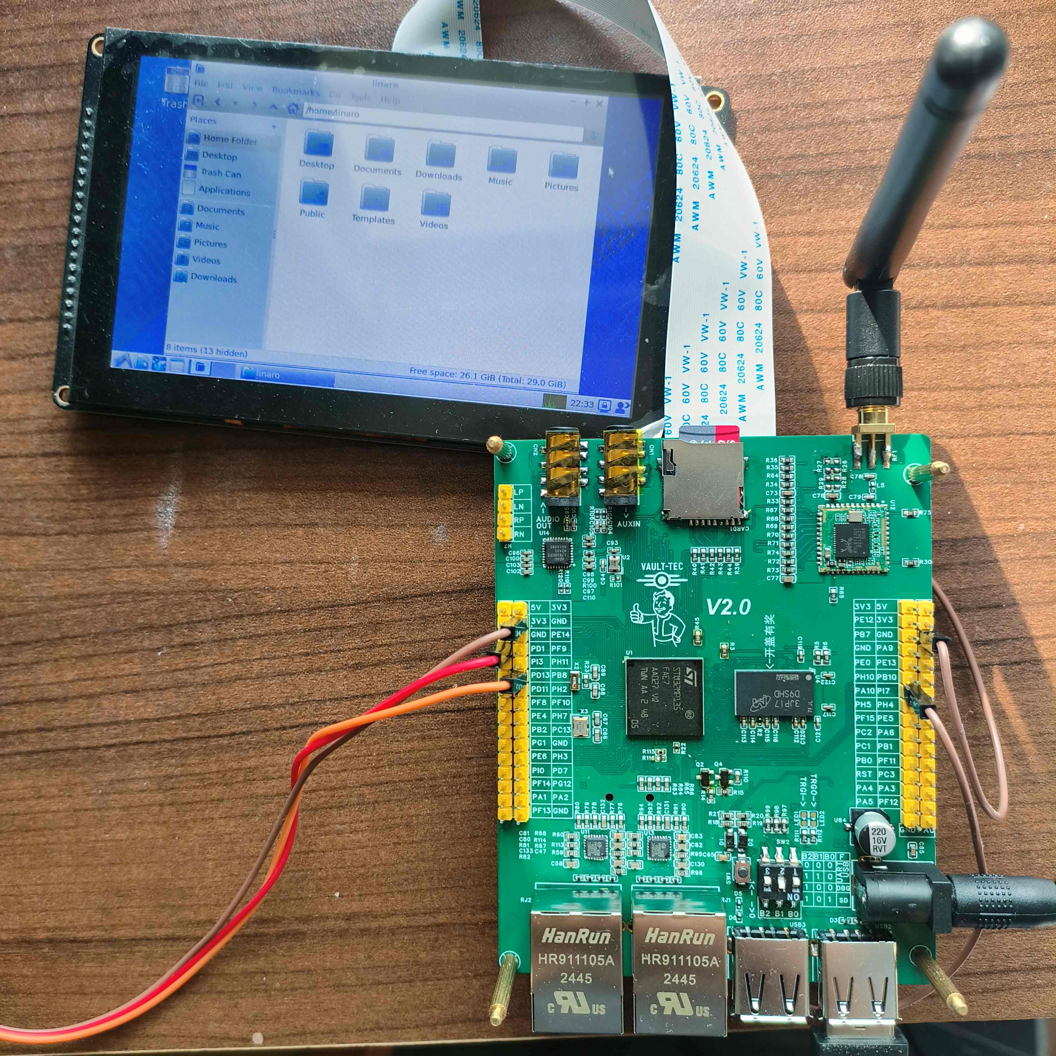 主控为STM32MP135FAE7,单核A7 1GHz处理器。 外设包括2x百兆有线网卡,RTL8723无线网卡,声卡,接口包括SD卡槽,RGB666LCD接口以及2xUSB接口