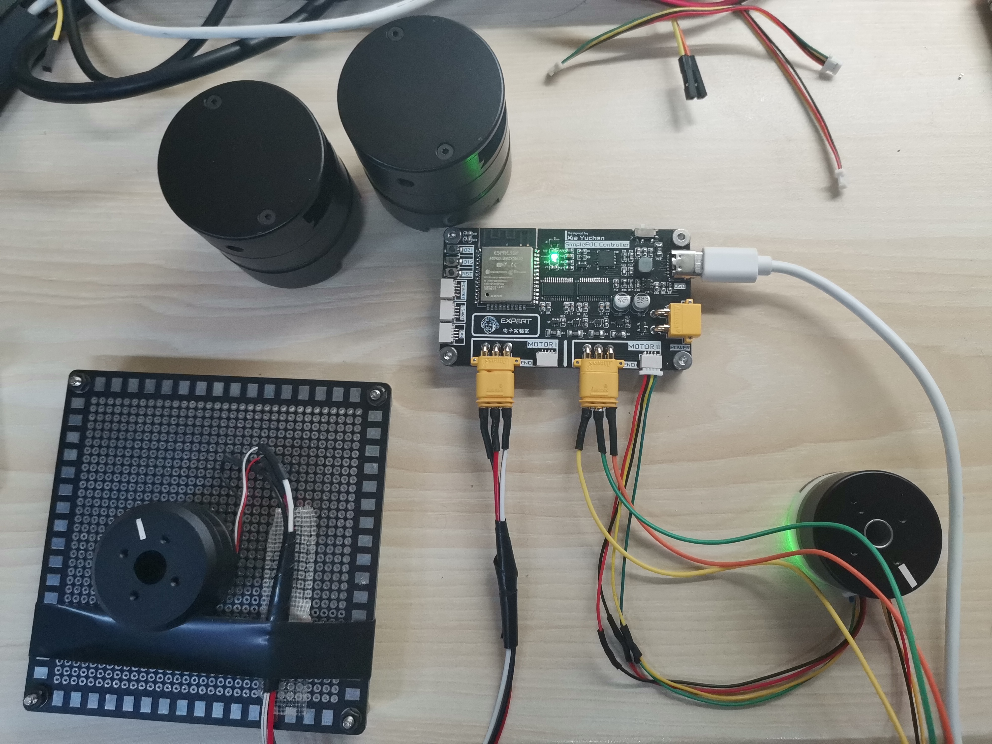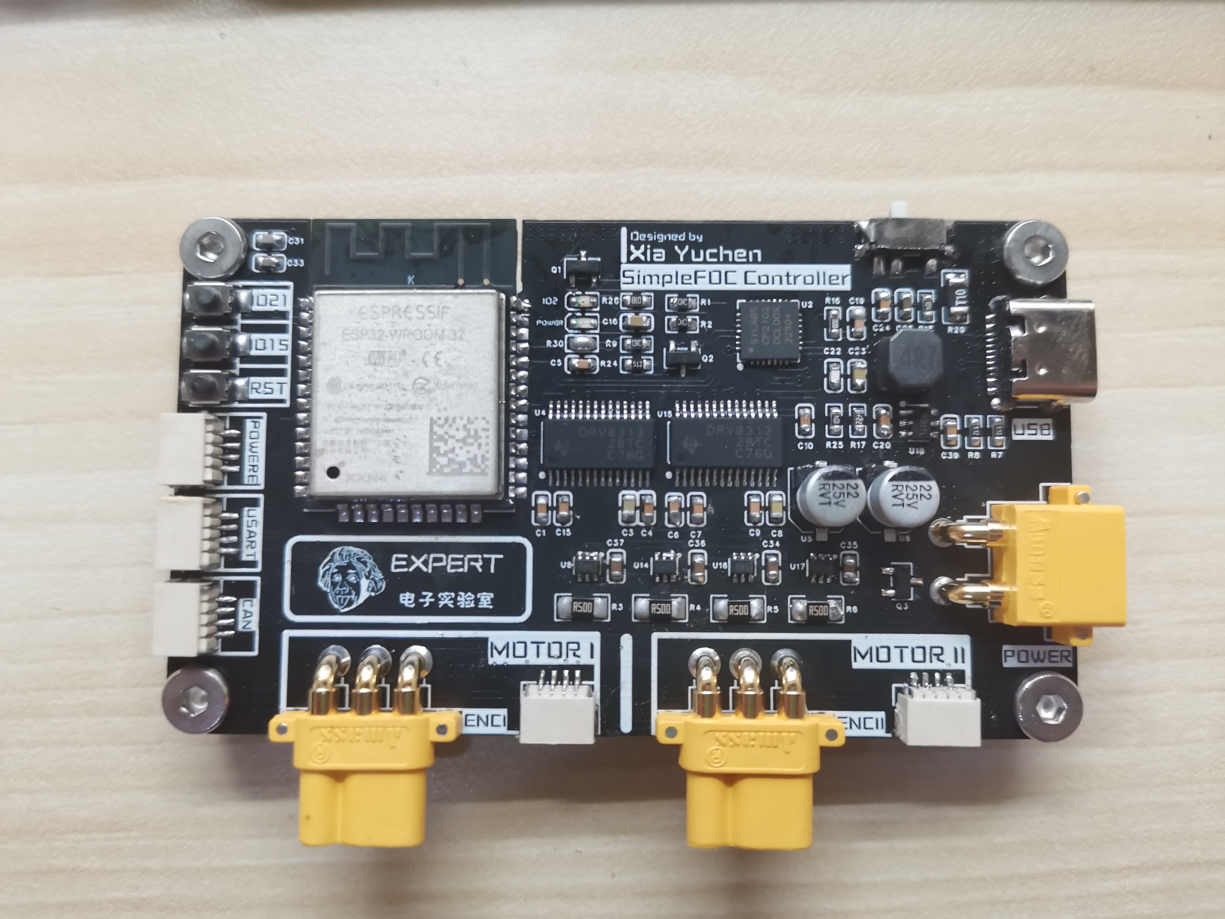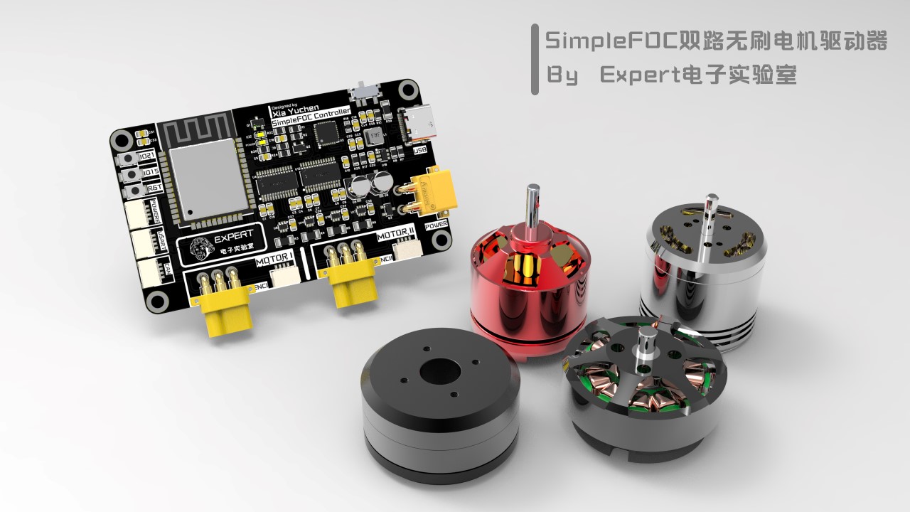 主要技术方案采用SimpleFoc,主控芯片采用ESP32模组,驱动芯片使用DRV8313,电流采样芯片采用INA199,可以驱动两路带编码器的无刷电机。