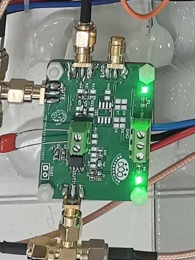 自主平衡放大器利用电阻分压和运放负反馈放大在不同的电感电容情况下将待测阻抗两端电压和输出电压限定在一定范围内,由分压电阻、反馈电阻和OPA690高速高频运放组成,经过仿真测试结合实际结果,我们将分压电阻固定在100欧姆,反馈电阻设置为510欧姆,输出有效值实测限定在80mV-2.6V之间,需要的增益区间为-16.4dB-23.9dB,频率范围为50kHZ-500kHZ,所有参数均在OPA690的范围之内,输出信号不失真。