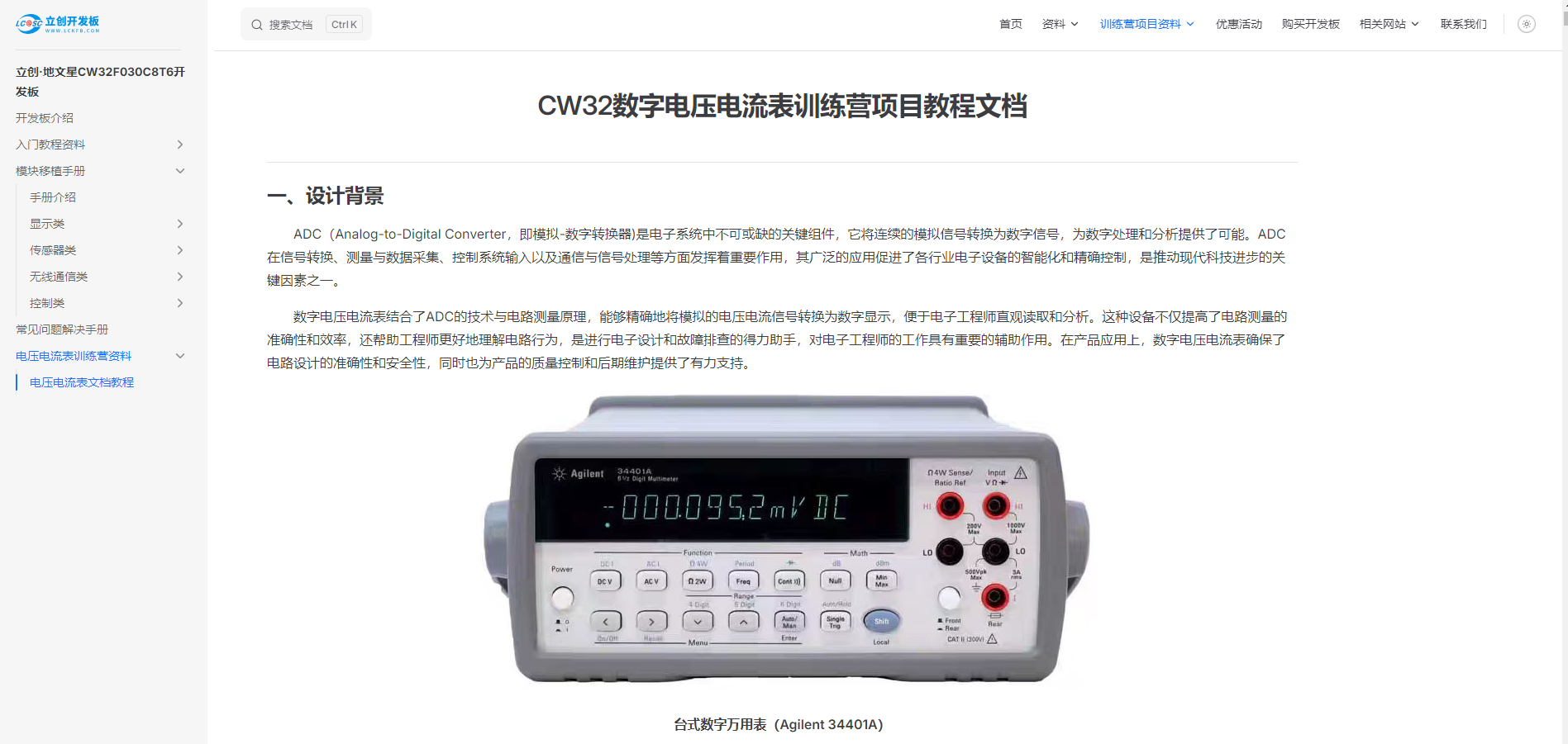 硬件部分主要参考的《CW32数字电压电流表训练营项目教程文档》文档非常的详细,细致到每一个元器件的选型,是一个非常棒的文档!