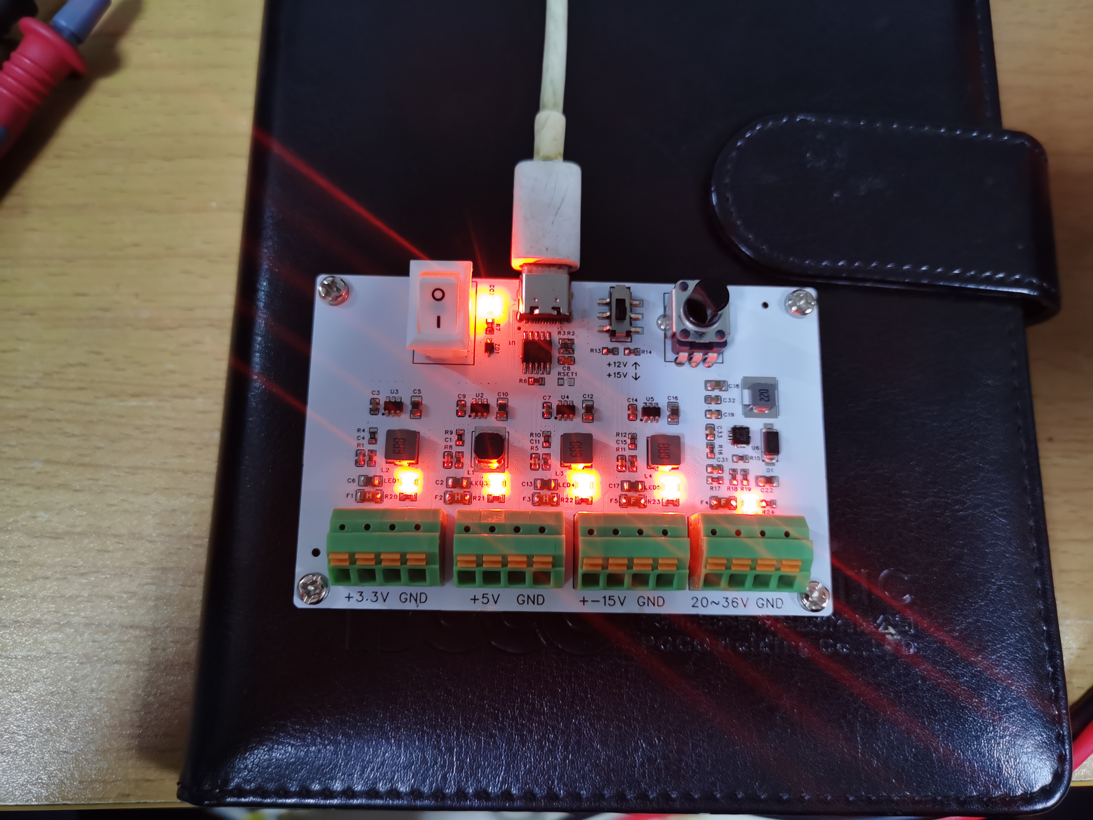 通过USB适配器的PD或者QC协议,诱骗出20V作为主供电,然后输出3.3V,5V,±15V/±12V,20~36V等多路电源。