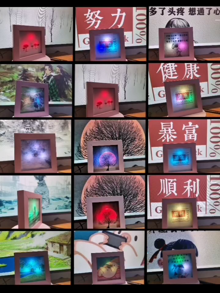 应用场景: 雷达模式下可以作为一个人体感应小夜灯、常亮或其它模式下作为一个氛围灯摆件、画纸可以任意更换,有警醒或纪念作用