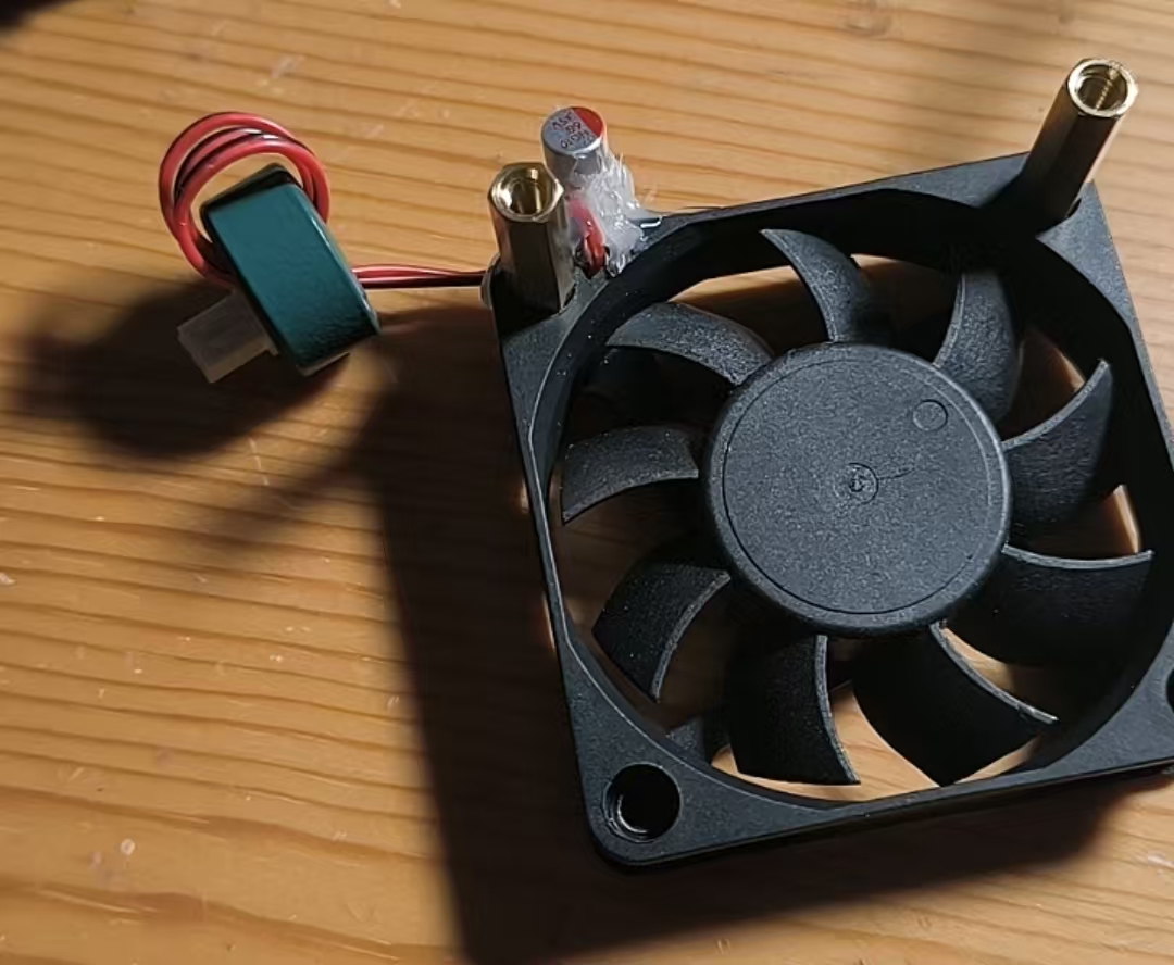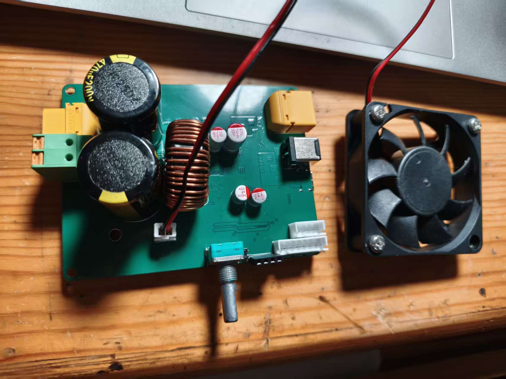 测试散热风扇呢,结果高频噪声非常严重,直接花屏,无论是把线绕到磁环上,还是在靠近风扇处并联电容都无济于事,串扰严重到让单片机频繁重启,然后莫名其妙就正向短路了,鸡哥电源适配器的接头也直接带走了,man,What can i say.