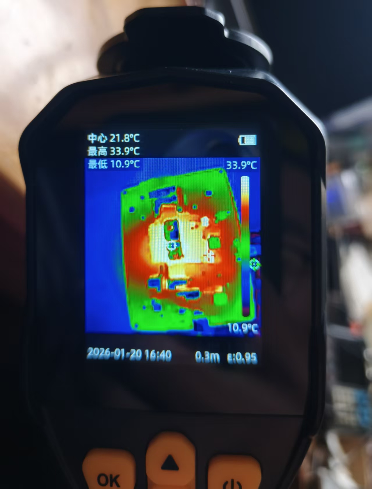 但是mos和驱动也来到了40℃,再升下去肯定要出问题。