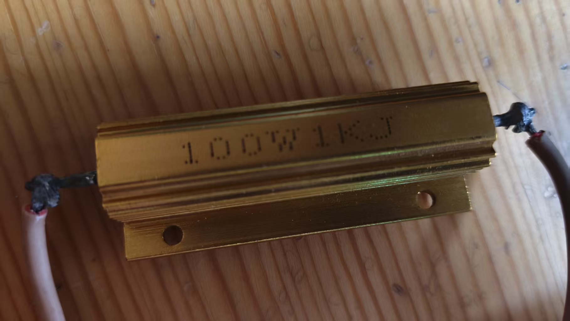 这是负载(1KΩ 100W),已经是手头上功率最大,阻值最小的电阻了,买的大功率滑动变阻器到现在还没发货,应该是赶不上了。