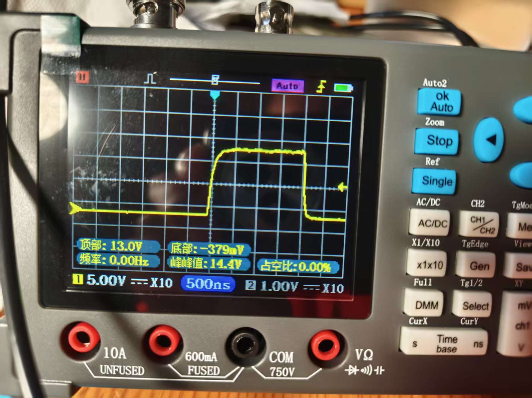 我们的纹波也达到了惊人的500mV!所以这次测试到此为止,结果不理想,是完全不能用的地步。