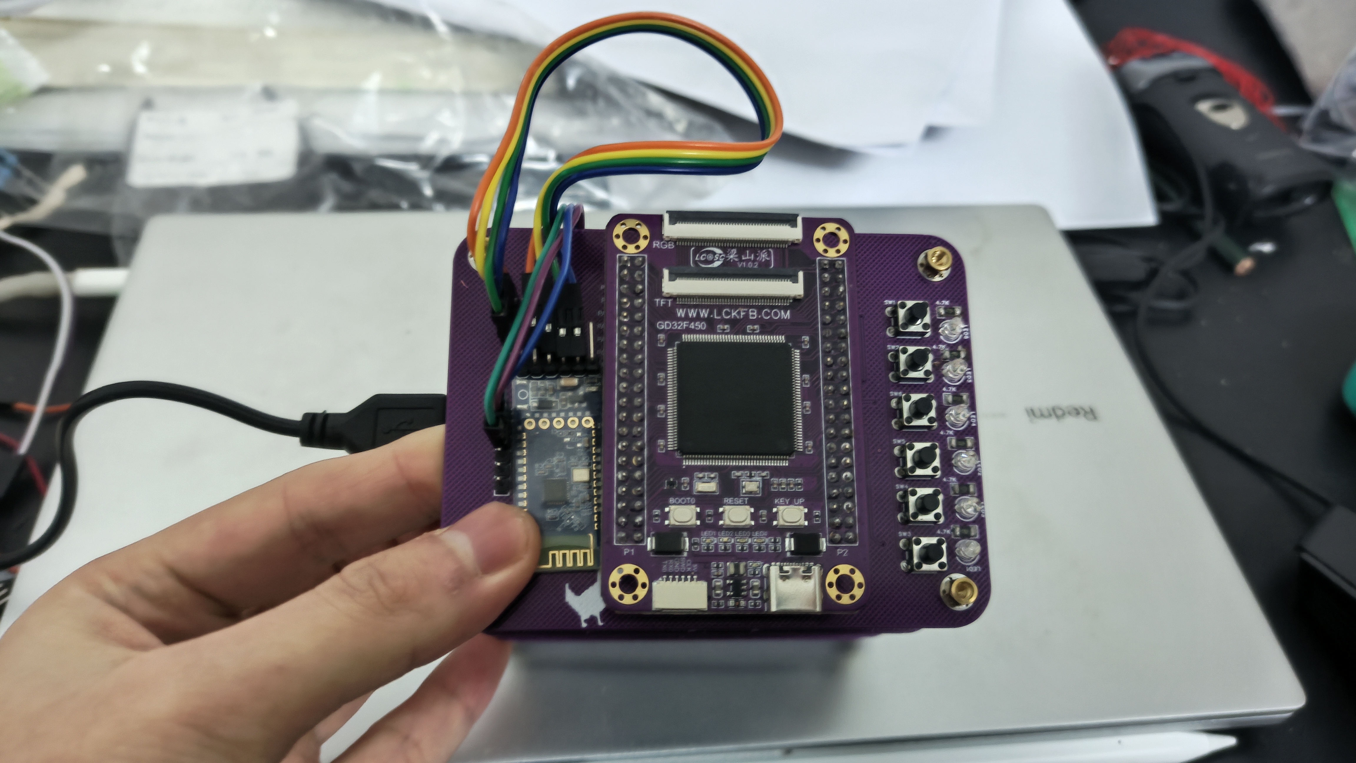 对的一个刚入门玩电子的萌新来说,难的、高大上的东西我也不会做,加之我书桌面也有许多如台灯、小音箱之类的小电器需要控制,所以便想做这么一个东西,也是我第一次完全独立且全流程的完成这个项目,基于梁山派开发的拓展项目主控芯片用的是GD32F450ZGT6,开发板直接插在两个20*2pin的排母