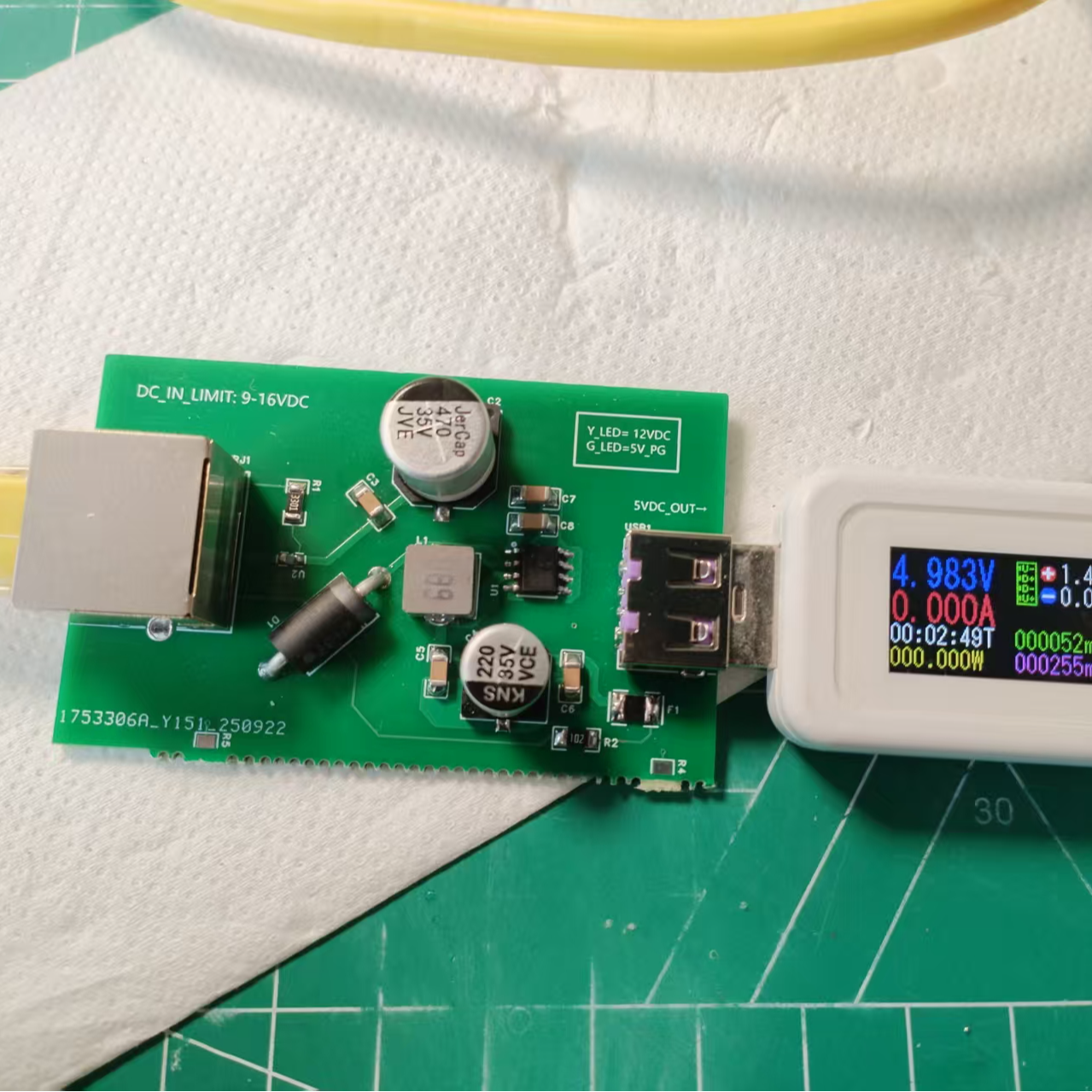 为此使用圆口5.5mm DC-12V 接头为发送端RJ45网线供电,并在接收端使用DC-DC BUCK降压芯片从新获得稳定的5VDC供电,让摄像头更稳定的工作。