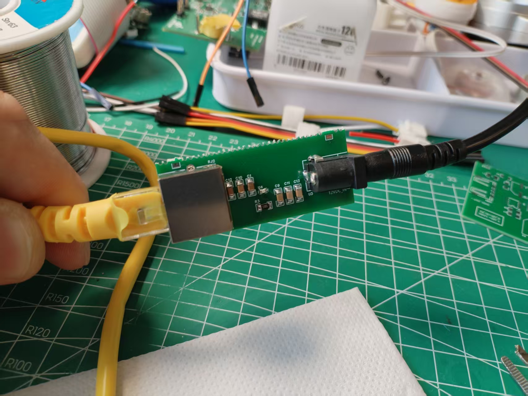 WARNING:请勿使用劣质铝芯,铁芯的网线,以免在线缆上损失过多能量。请使用正规CAT5类8芯网线完成该实例。