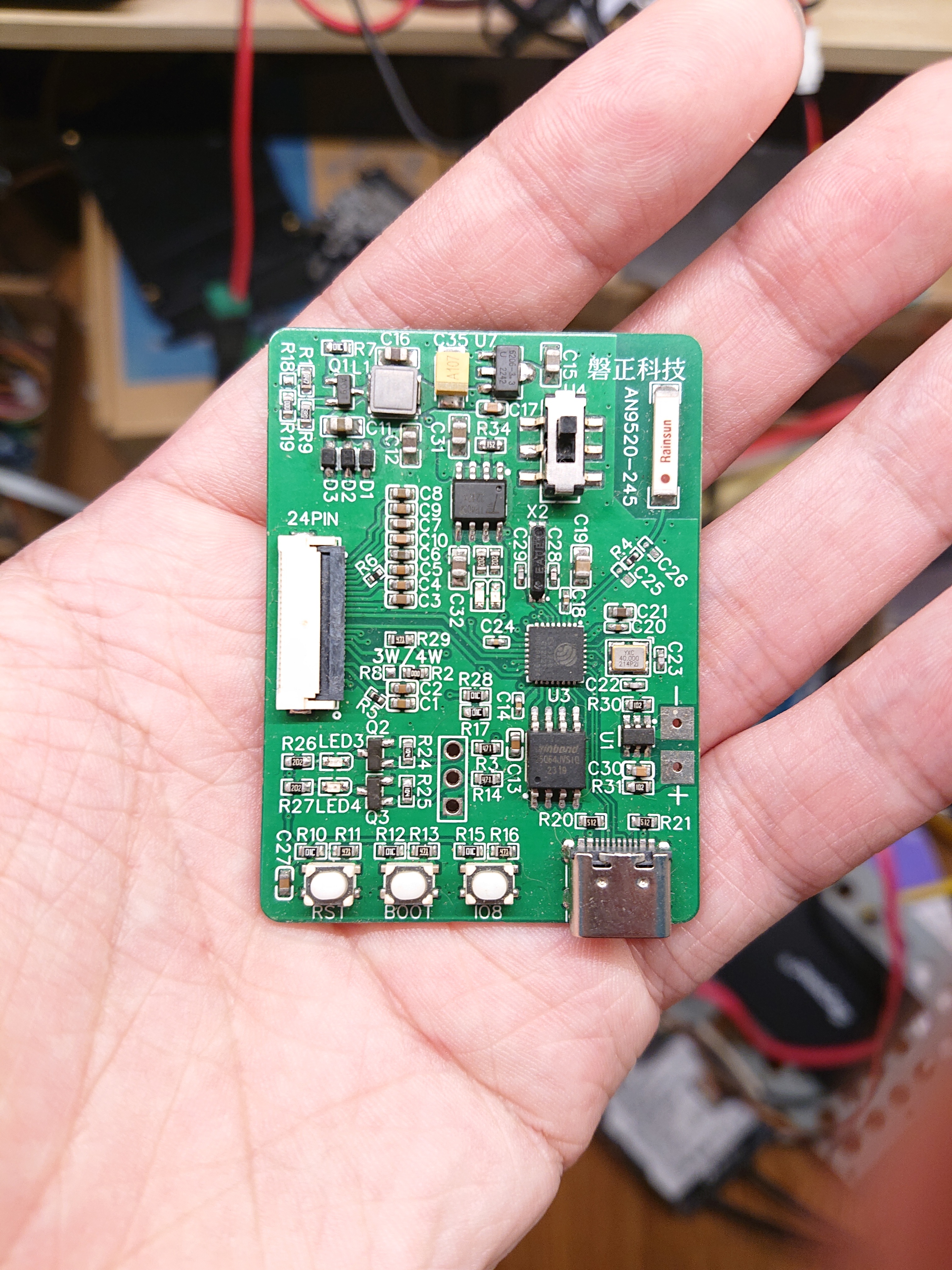 板载三个按钮,分别为RST复位、BOOT烧录、自定义IO8。typec接口为供电和USB通信,预留一组3Pin插针为TTL串口,做烧录调试用。BAT焊盘可焊接锂电池供电,带有充电指示和过充过放保护。射频为高增益陶瓷天线,预留Π型网络做阻抗匹配,支持2.4G WIFI和蓝牙BLE。标准24PIN FPC接口兼容市面上各种串口墨水屏,3Wire/4Wire模式可跳电阻切换。板载两颗LED指示灯可自定义功能。板载32.768K高精度RTC晶振,时钟更精准。