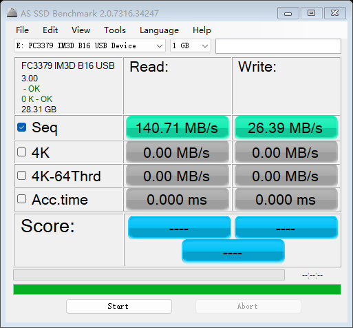 即使MLC开PSLC,跑圈也还是这么可怜的速度。主要是3379不支持交错,4CE速度和单CE一样,加上本身主控频率低,速度就很拉跨。