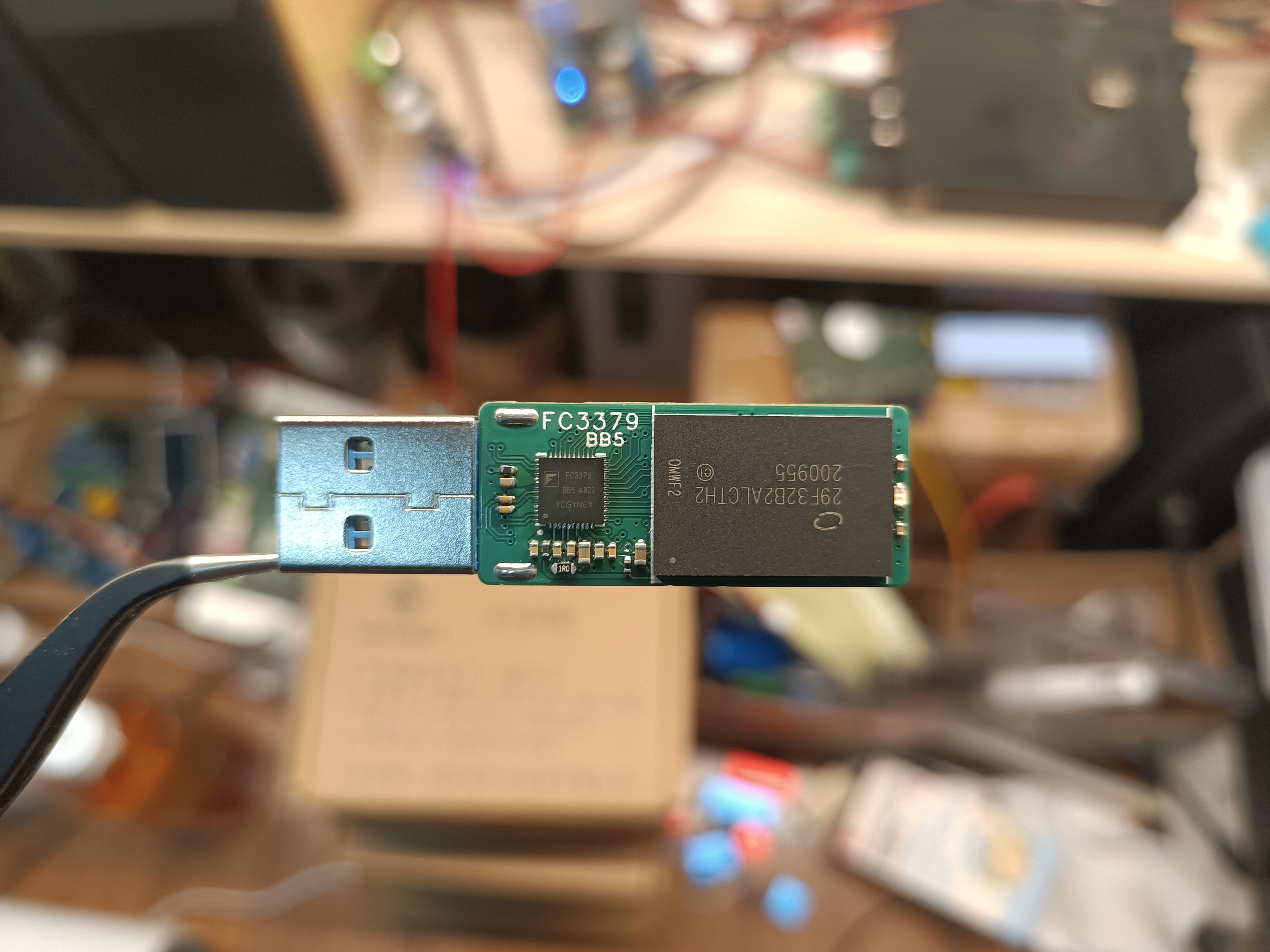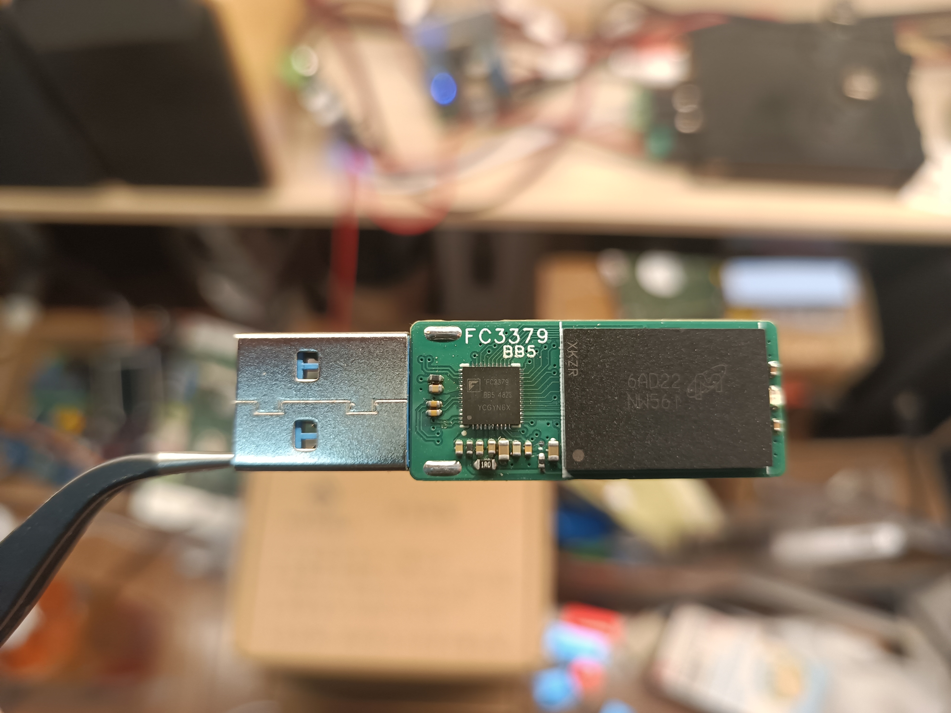 三地一芯FC3379,新烂片之王,取代老旧的安国6989,支持USB3.0协议,但是速度不算快。但是温度表现出色,跑圈只有微微温,是我玩过最凉快的3.0盘了。稳定性也不错,TLC直写不掉速,垃圾的片子也可以开PSLC续命。重点是价格良心,是DIY3.0U盘中最便宜的方案了,不愧国货之光。