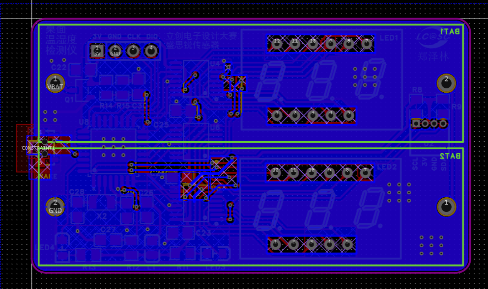 背面只有电池盒,为了铺铜完整,背面的线要尽可能短