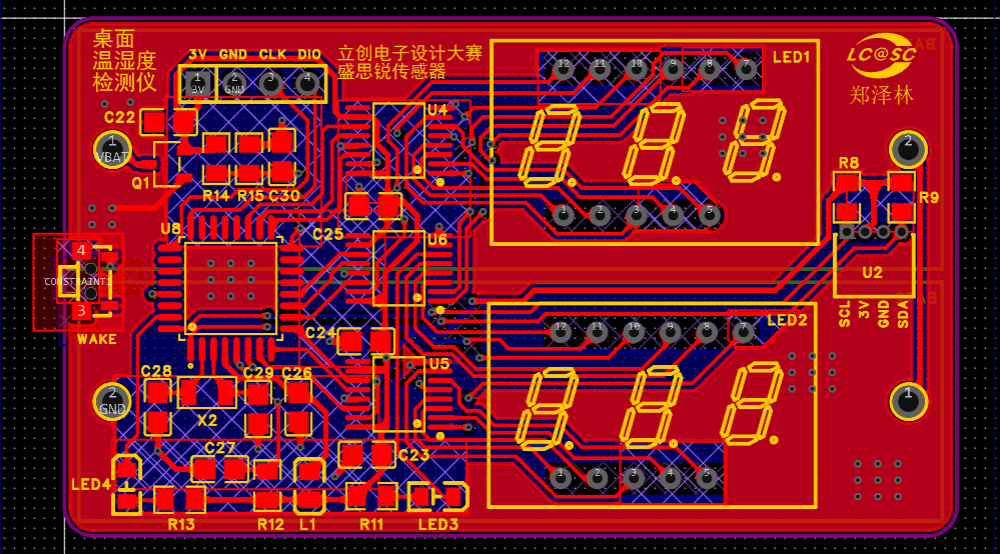 答:是跟着嘉立创的温湿度传感器训练营制作的,不是原创