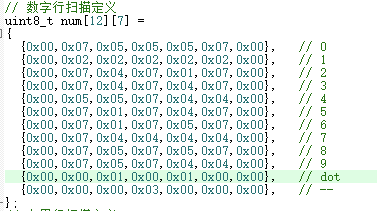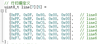 在硬件部分我也讲到了按行扫描时的数值方面,哪么这里我们就需要将所需的数值转换成我们代码中可以用的,还是先看图: