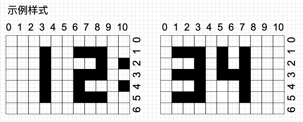 数据的定义请与上图进行对比下,应该就能明白,另外这里因为还需要秒跳动时闪烁的点及年月日 设置时之间的分隔符,所以定义中多了两组数据。