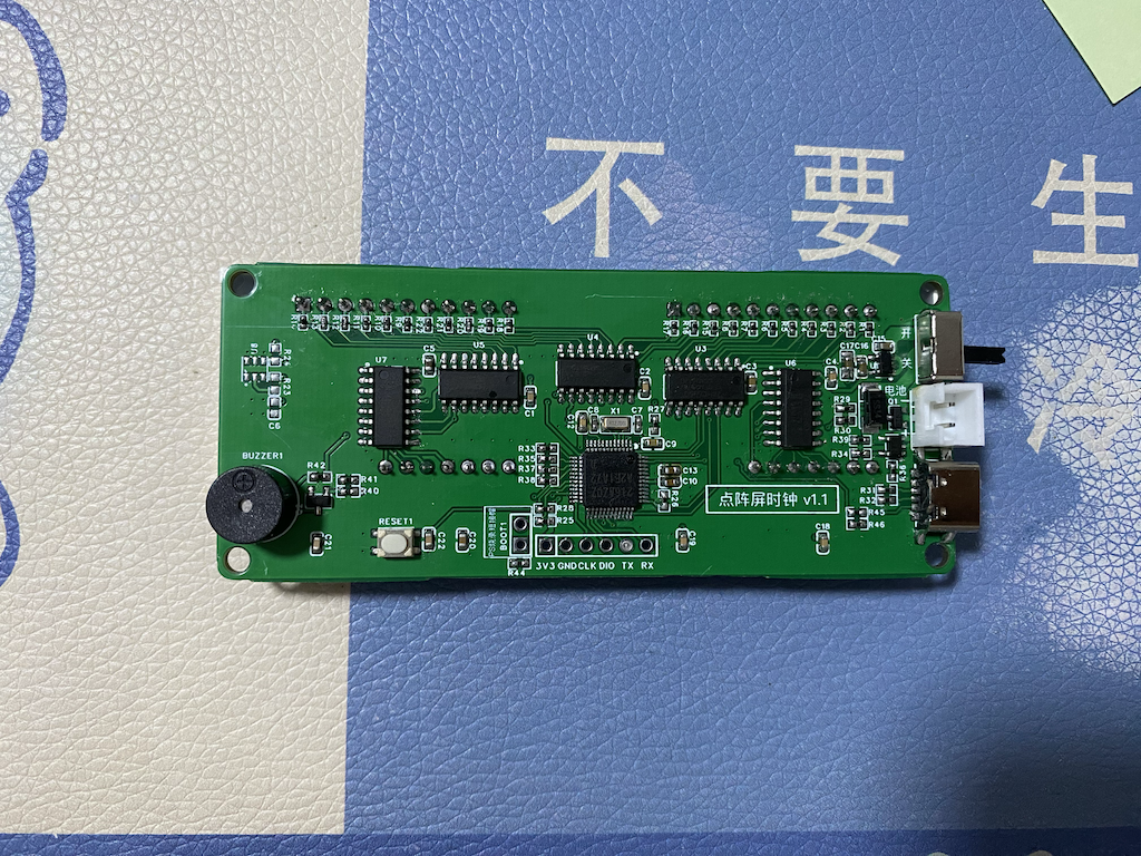 基于瑞萨MCU R7FA2E1A72DFL设计的一款点阵屏时钟,点阵屏使用的是一款桔色的屏,分辨率是11*7,使用了两块实现了时间信息的显示。桔色的屏显示效果很漂亮,而且本身是雾化面板,所以每个像素点显示比较均匀,比LED直接露在外面会好很多。