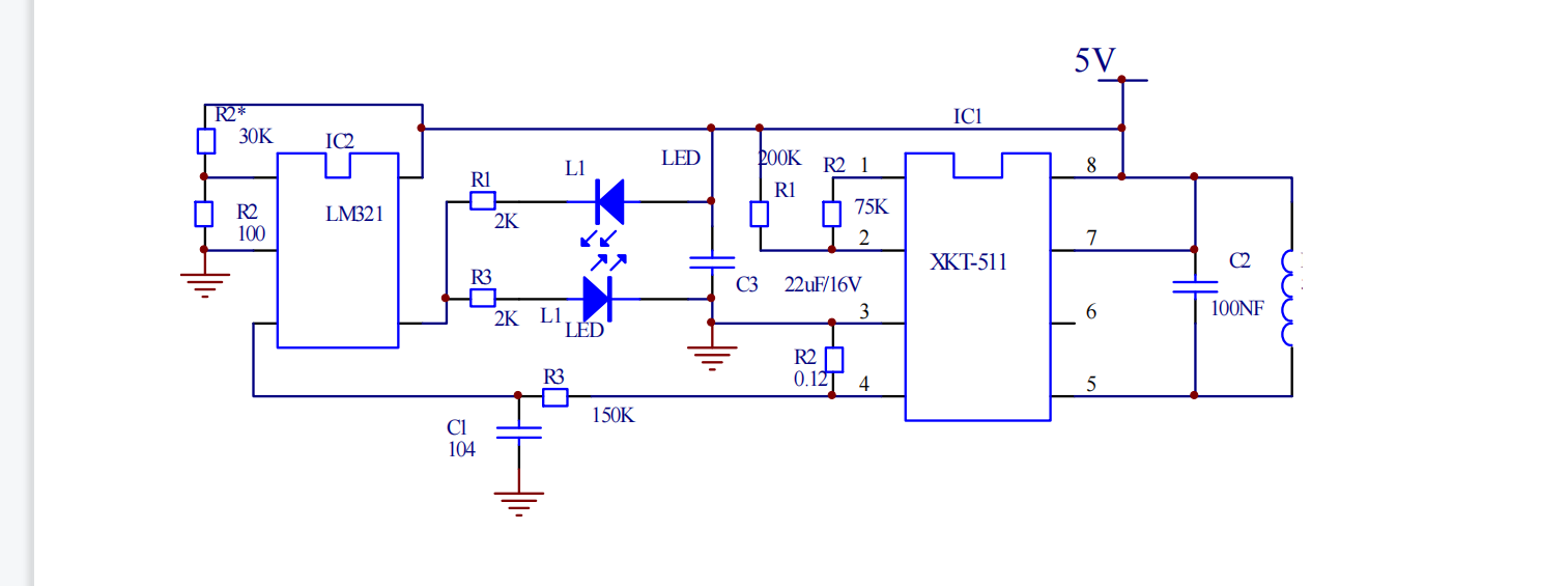 如果觉得L2不够亮,可以更换成1K或者1K一下的电阻。